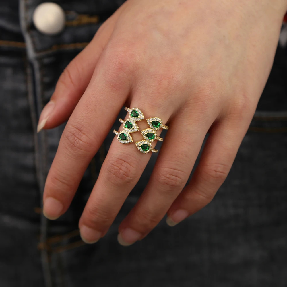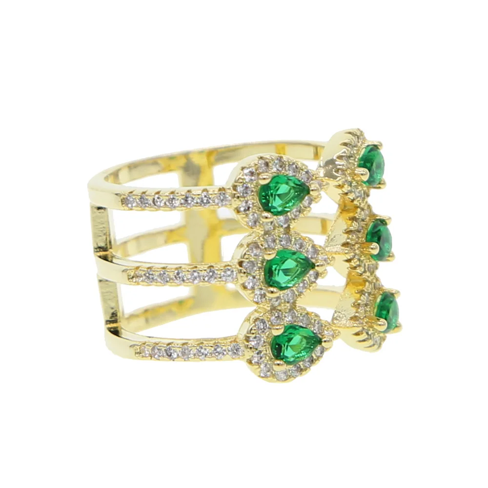 Женское кольцо с зелеными фианитами, обручальное кольцо золотого цвета с зелеными каплями, 2021