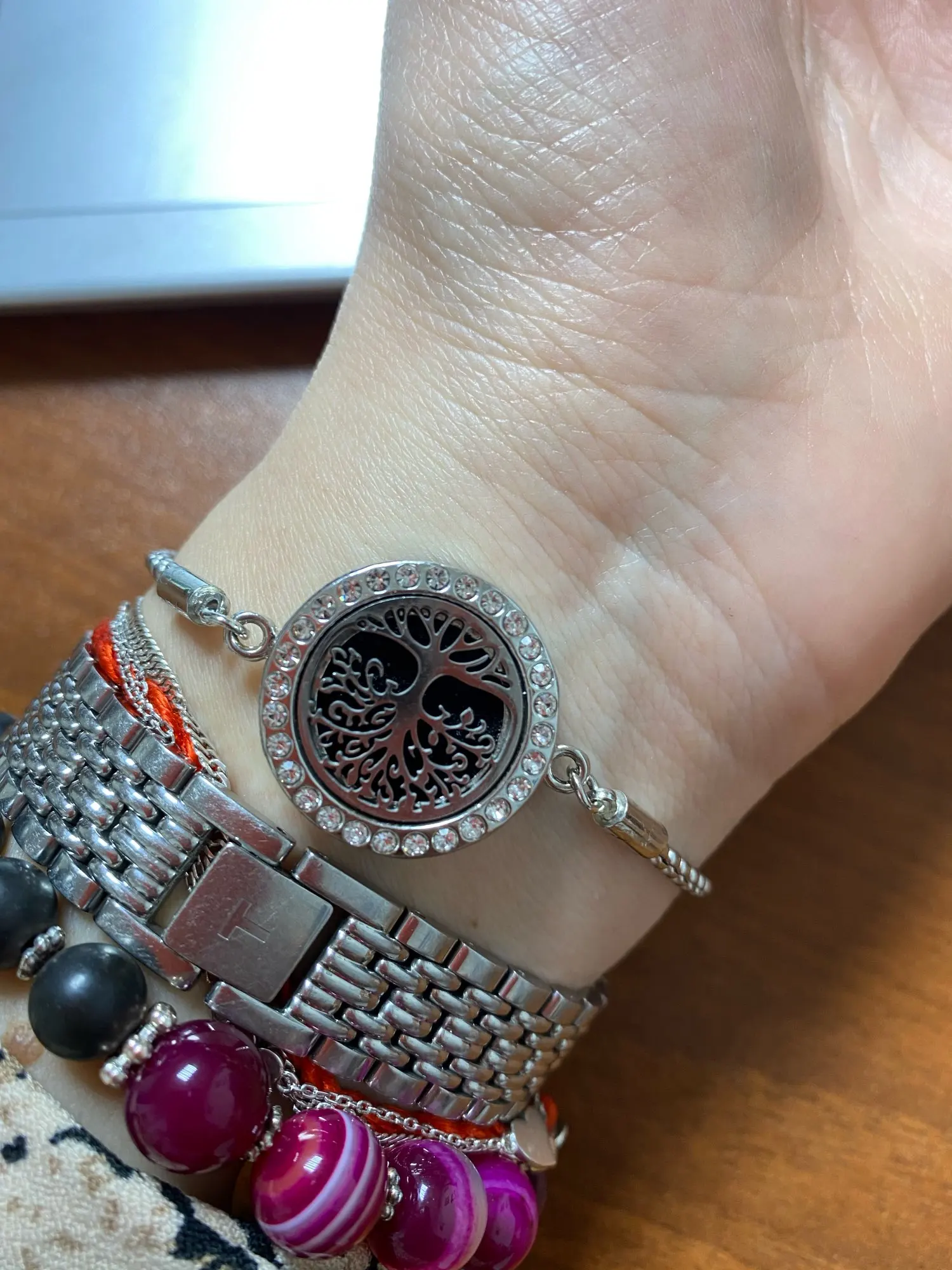 Хорошие симпатичные украшения. Брала и кулоны, и браслеты, для подарков. Но обратите внимание: сменные подушечки для них разных размеров, кулоны крупнее! Я не посмотрела на подписанный размер на картинке, так что придется заказывать дополнительно. В самом кулоне/браслете подушечка произвольного цвета, не совпадает с картинкой.