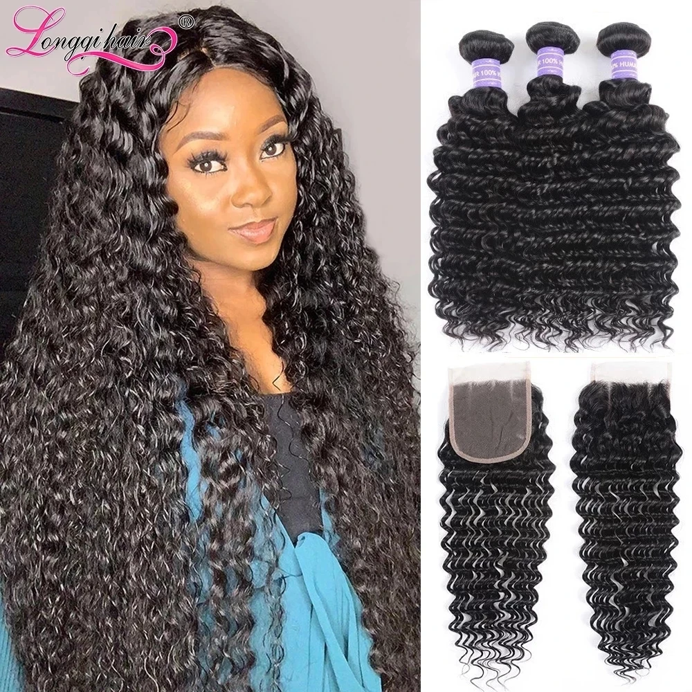 Deep Wave Hair 3 Bundles With ClosureBrazilian Deep Wave Hair Bundles With Closure