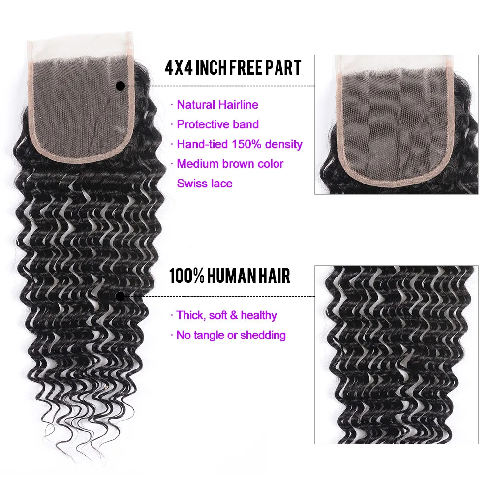 Brazilian Deep Wave Lace closureSwiss Lace size 4*4 Free Part