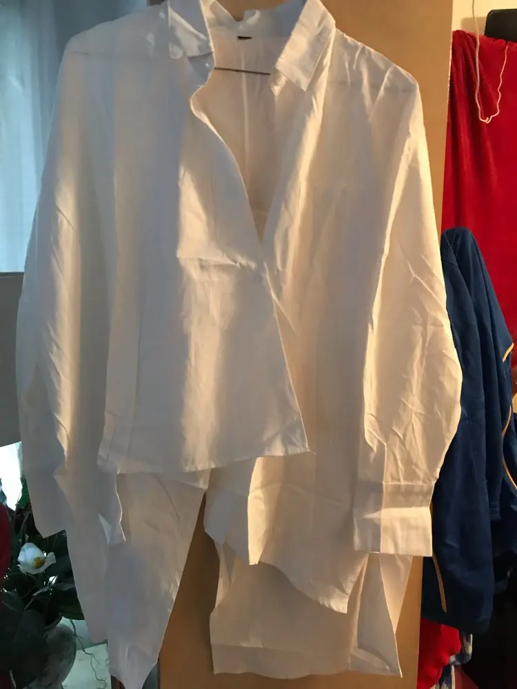 Рубашка интересная, ткань плотная, манжет рукава закрывает 1/3 при моем размере S и широких плеч. Люблю ассиметричный покрой. Недели 2 шла до Беларуси и месяц до почты. Продавец-милашка, положил 2 временные татуировки в подарок.