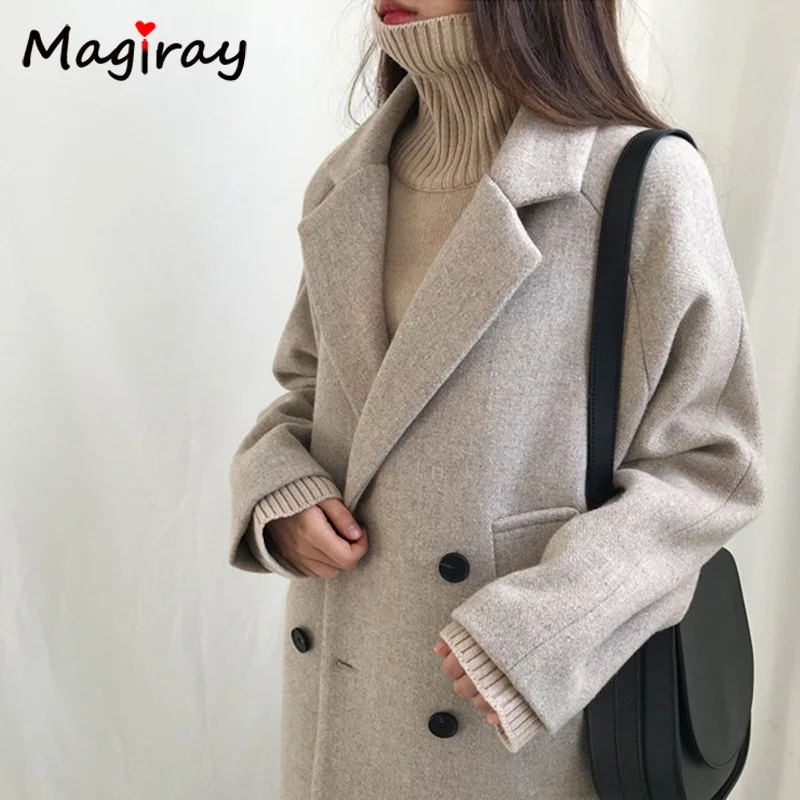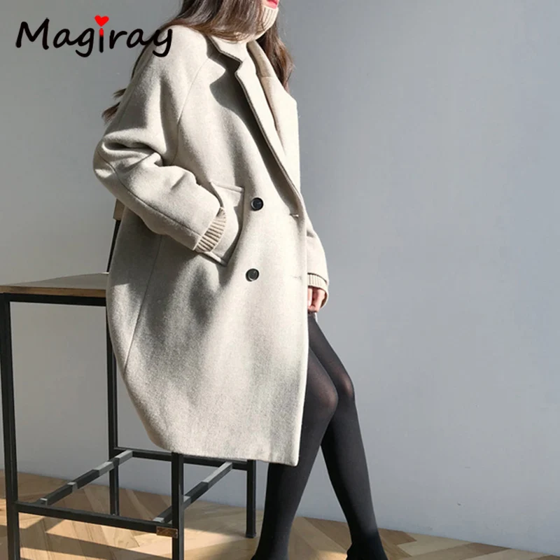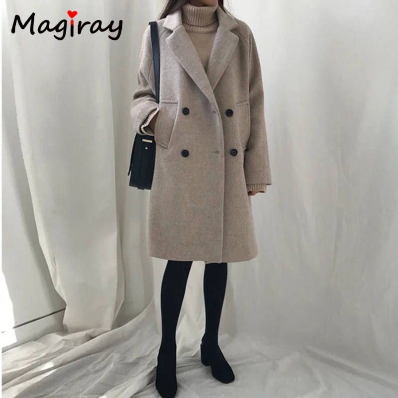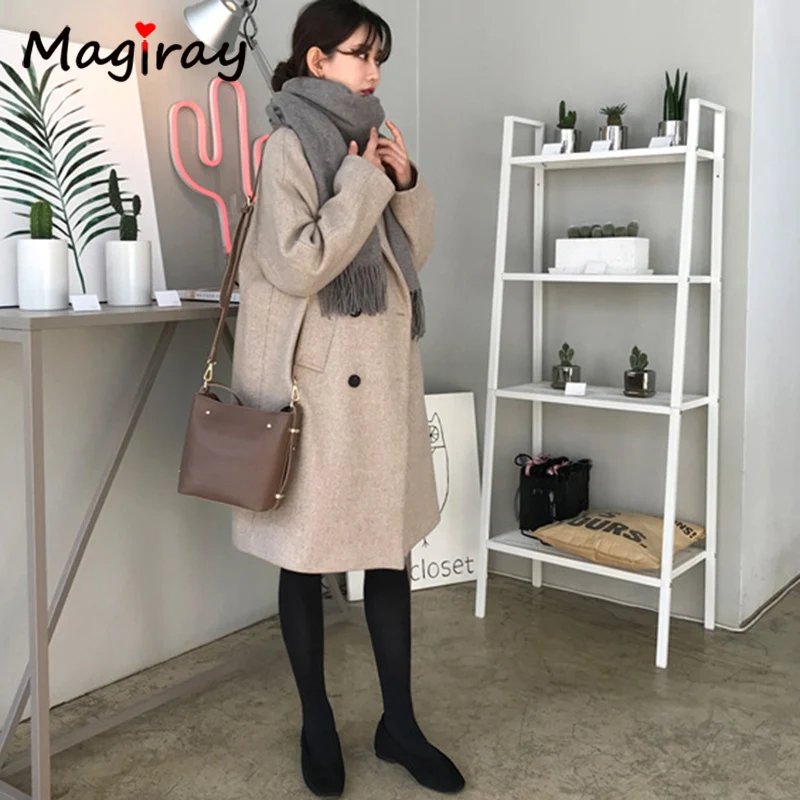 Женское шерстяное пальто Magray, с длинным рукавом и воротником, элегантное пальто в Корейском стиле на осень и зиму, 107