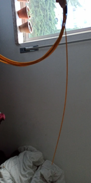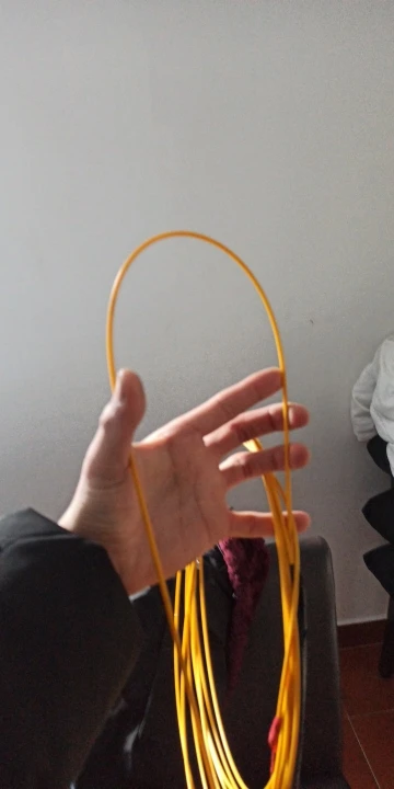 Это не стекловолоконный кабель, а пластиковый, который не распрямляется как стекловолоконный, а сохраняет свою форму, данном случае свернутый, поэтому на практике в тонких трубах его не возможно использовать