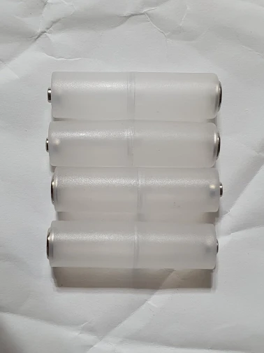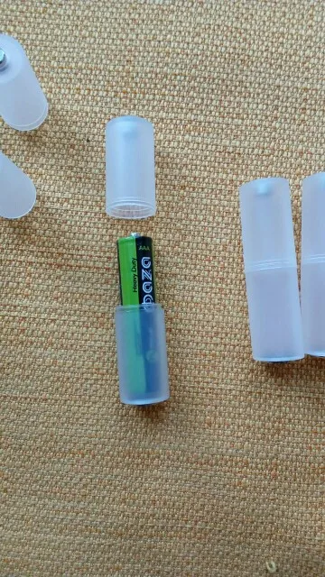 Товар: 2 контейнера на акки 14500 (АА) и/или 10440 (ААА); 4 переходника с ААА на АА. У одного продавца. Всё хорошего качества. Переходники с металл. донышком для "–". Акки 10440 в переходнике сидят очень плотно по длине, эл. контакт хороший. Вобщем, товар соответствует описанию, продавец быстро отдал товар на отправку. Продавцу спасибо. Рекомендую. Да, цвет – белый матовый, синева - искажение фото