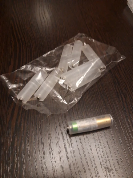 Аккум. ААА болтается внутри, контакта нет, подложил шайбочки, всё заработало. Добротно изготовлено.