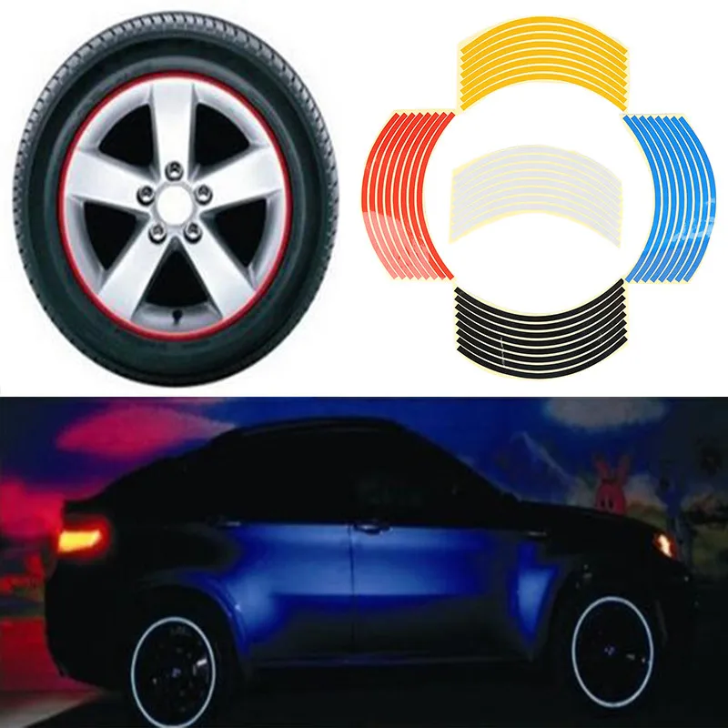 Наклейки на колеса автомобиля, мотоцикла, светоотражающие, 8 полосокнабор