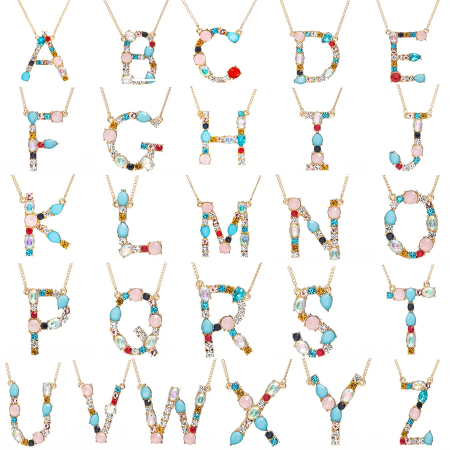 Женское колье с подвеской 26 букв, золотое ожерелье с металлическим кристаллом, A-Z ювелирные изделия, подарок, 2019