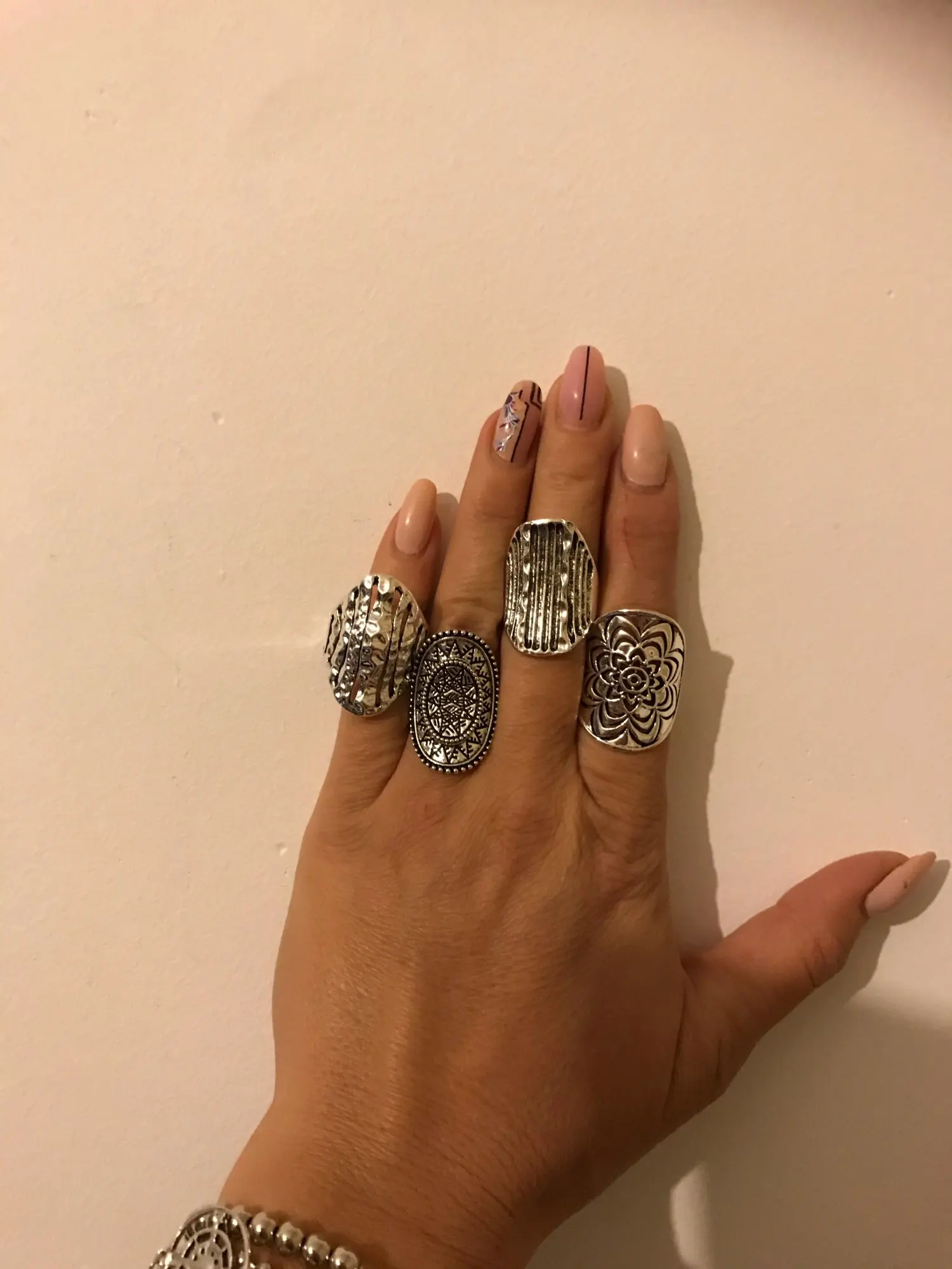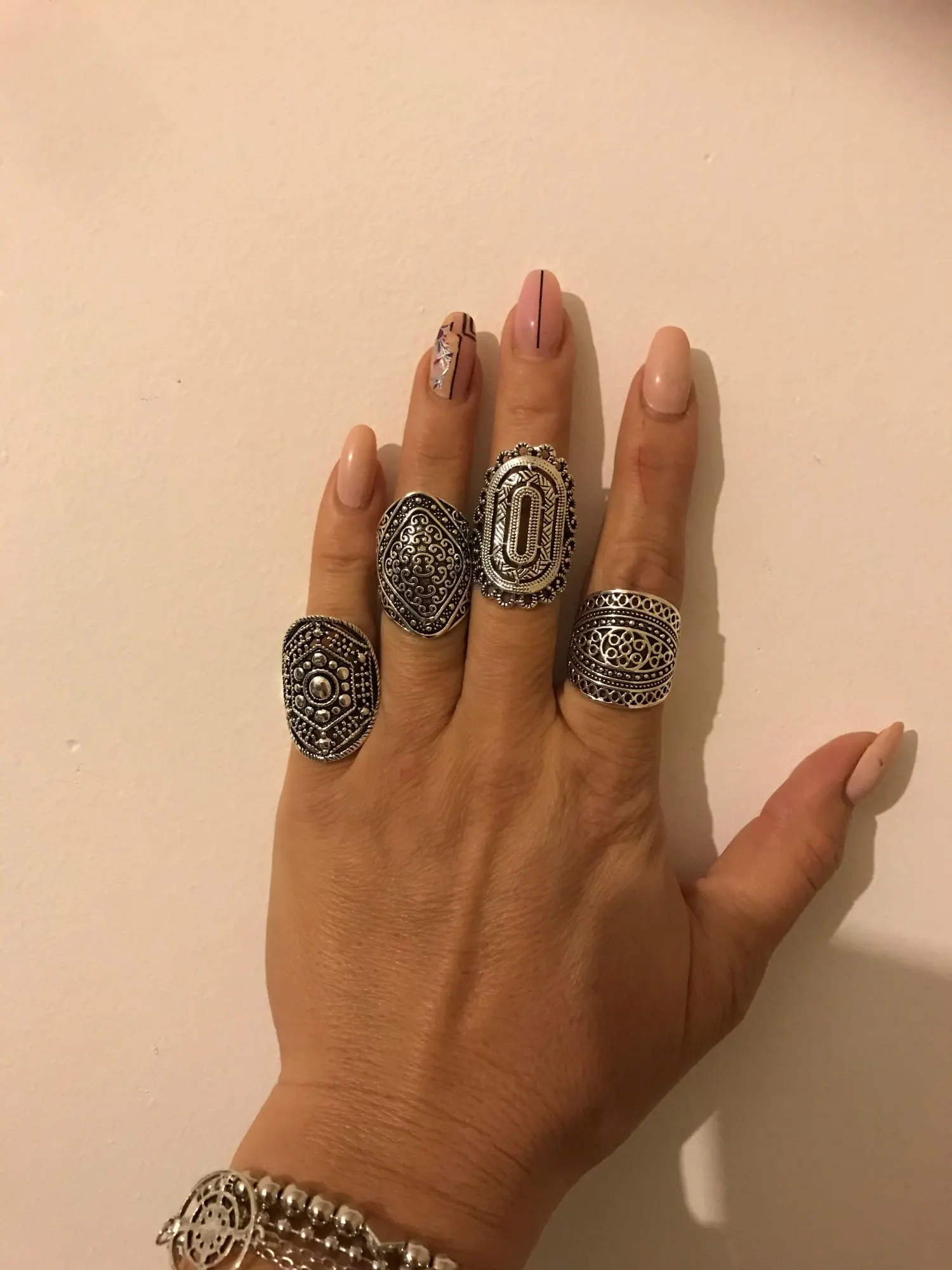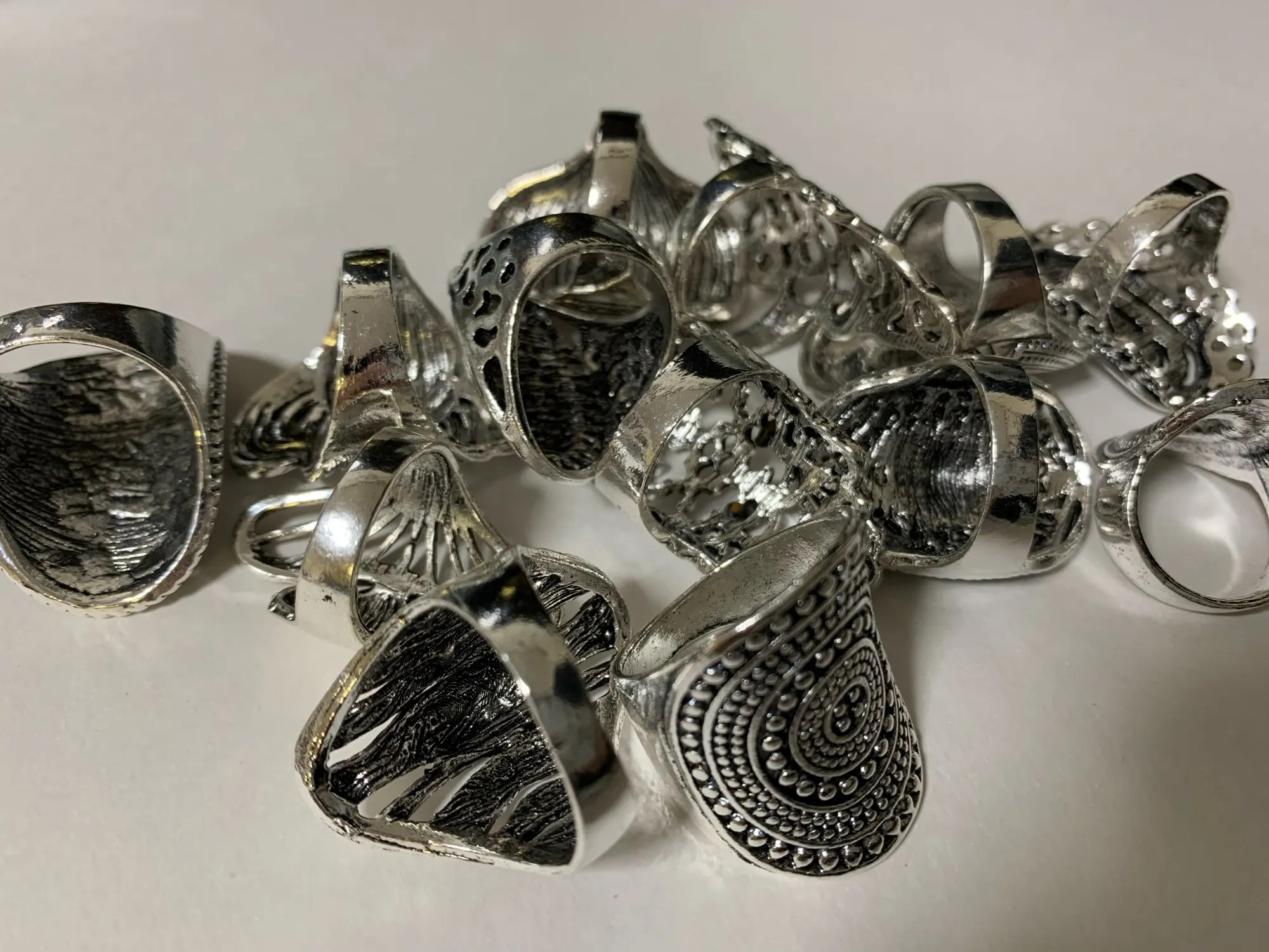 кольца классные 20 штук, размеры разные , много больших, не повторяются. так как предпологается носить на разные пальцы, все размеры подошли. Продавец отправил очень быстро, доставка в Пятерочку.
