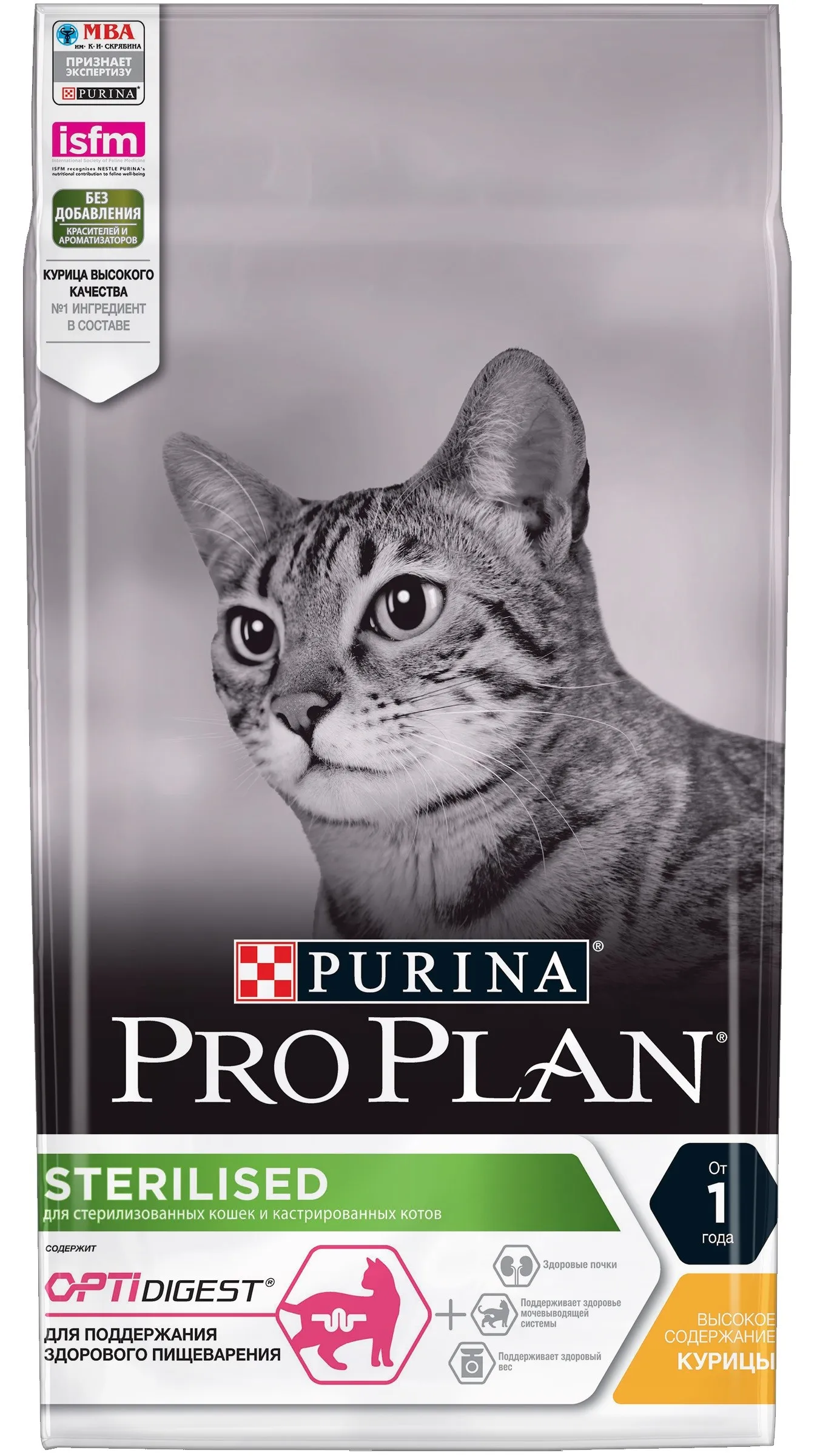 Pro Plan Sterilised сухой корм для стерилизованных котов и кошек с чувствительным пищеварением, Курица, 1,5 кг.
