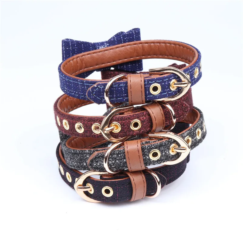 Регулируемый бантом животное кошка ошейник маленький средних собак и кошек Чихуахуа Мопс Цепочки и ожерелья галстук-бабочка плед щенок котенок воротники