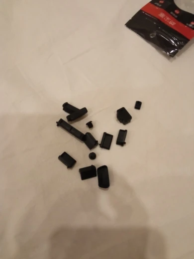 Достаточно качественные заглушки, всё хорошо подходит по- размерам. Шли очень долго, около 2 месяцев. Все известные разъёмы закрыл- VGA, HDMI, USB, Jack 3.5 mm и для картридера CD- карт, из комплекта остались только 3 неизвестного вида заглушки
