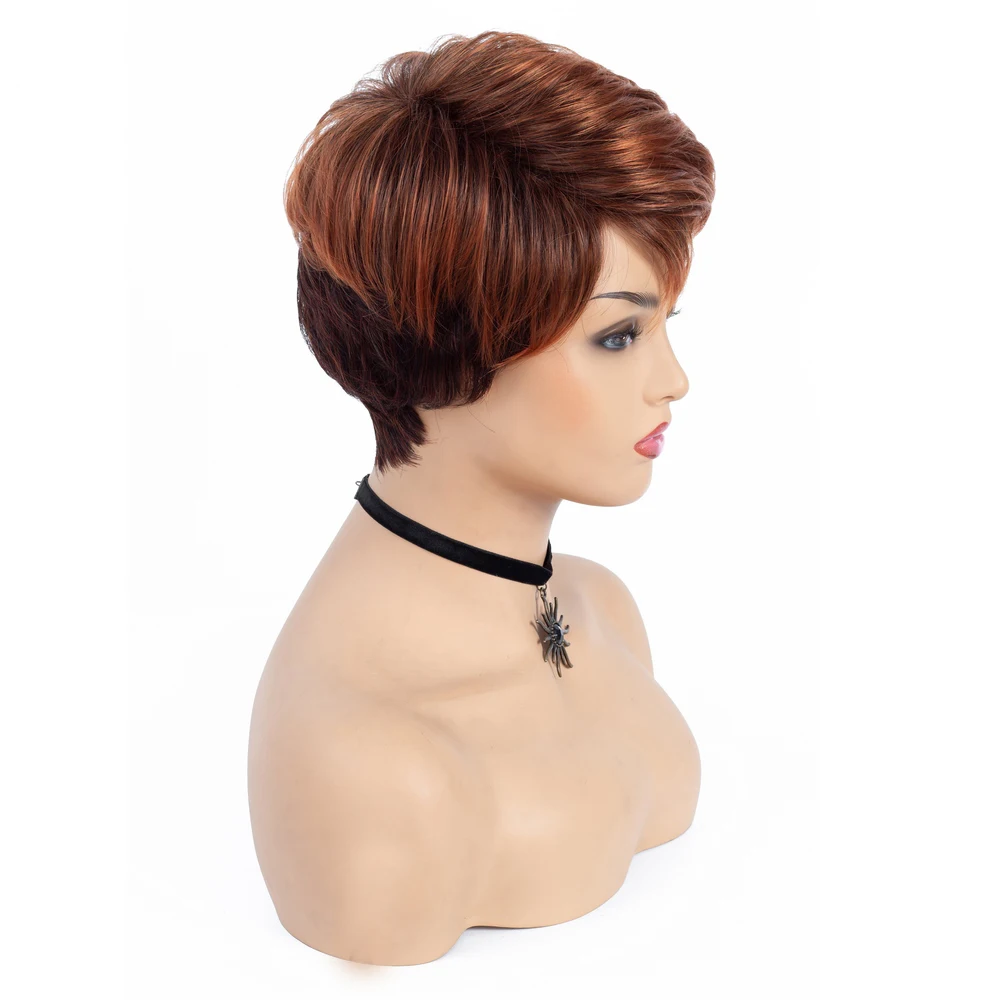 Парик из коротких синтетических волос BCHR, для женщин, темныекрасные, оранжевые, с боковой челкой, с эффектом омбре, естественные волнистые волосы