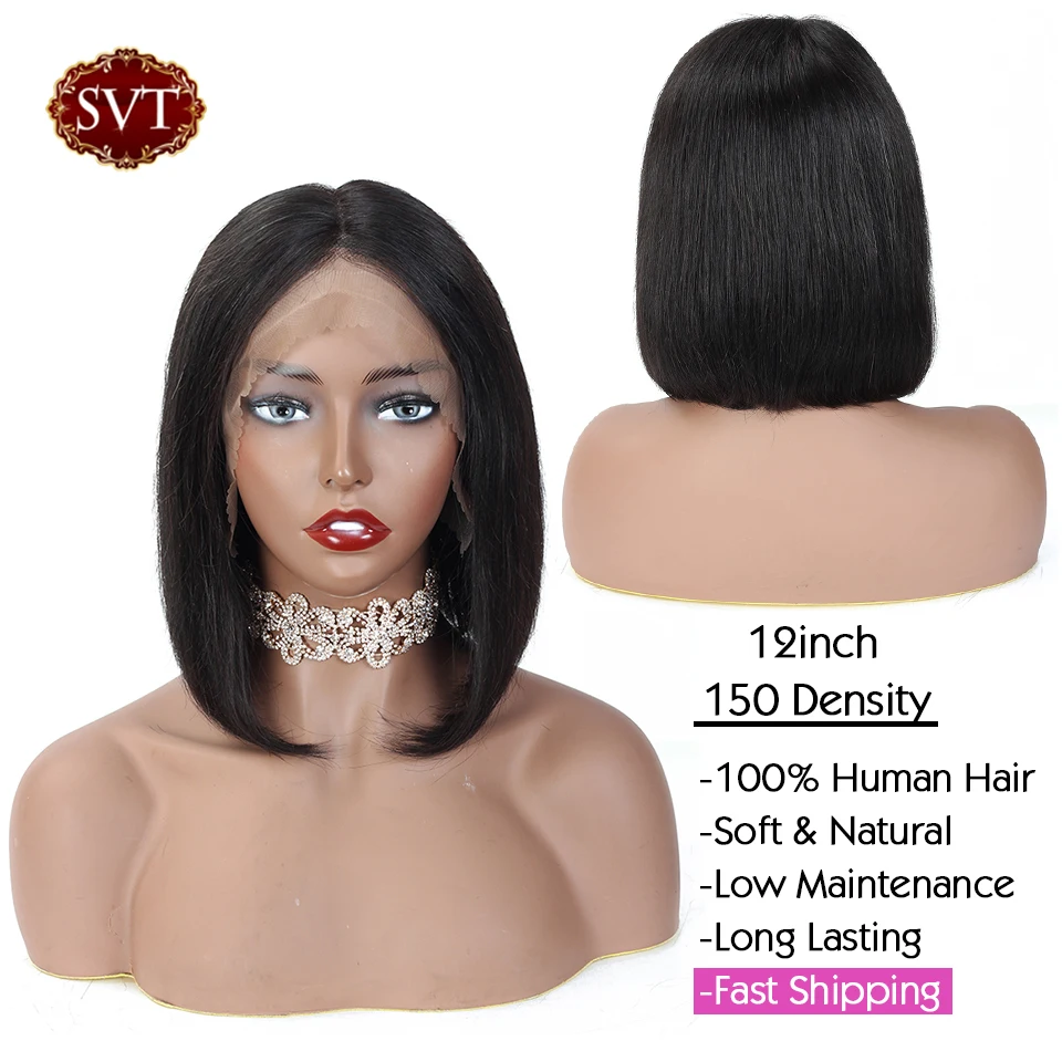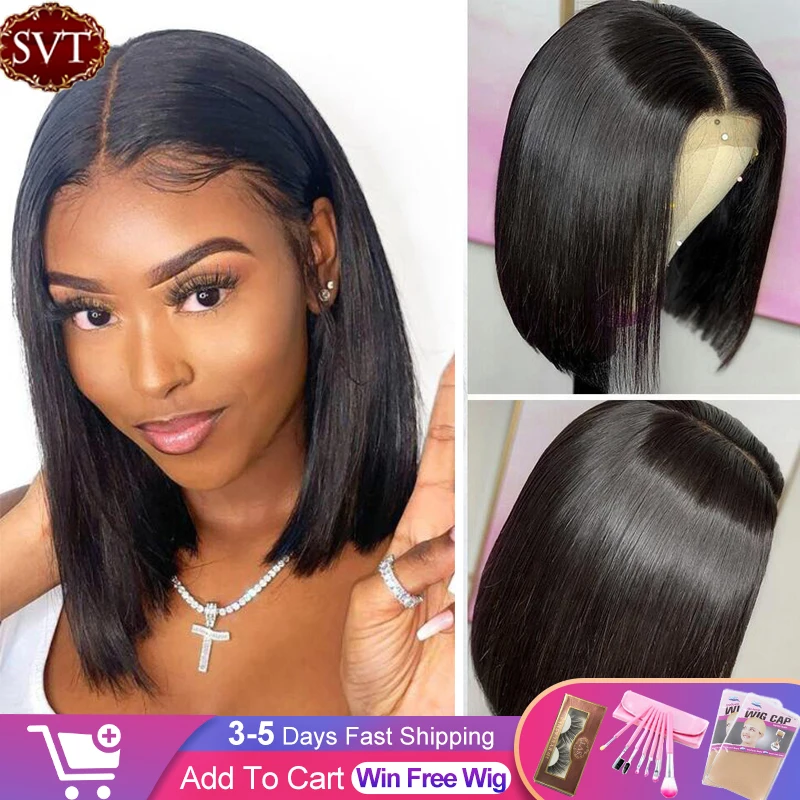 Прямые короткие парики SVT с Бобом, парики из человеческих волос с Бобом, 4X4, парики на сетке с Бобом для женщин, дешевые бразильские прямые волосы, парики с фронтальным Бобом