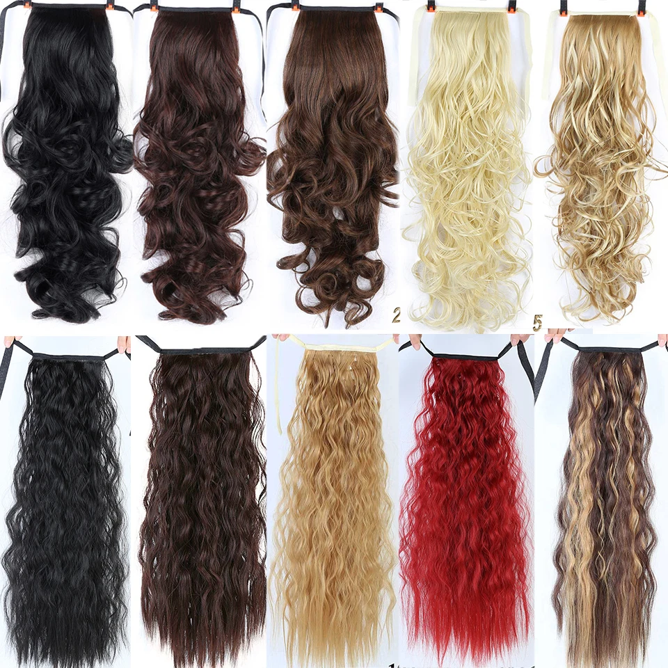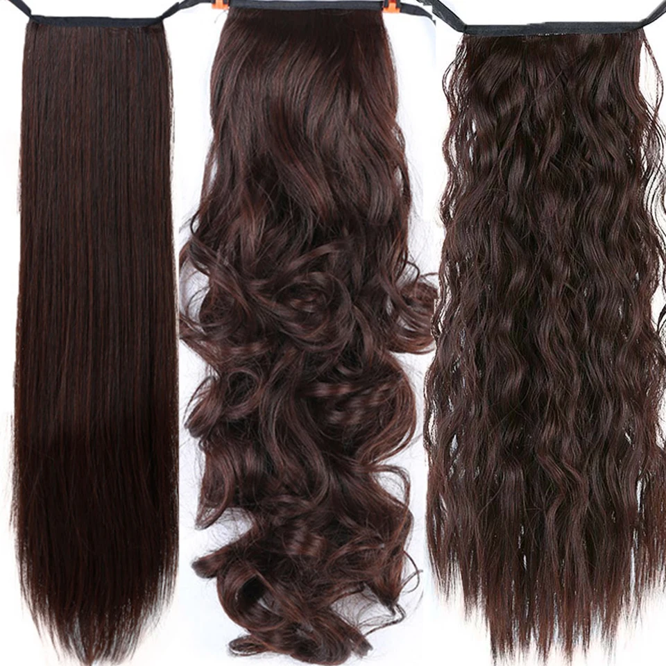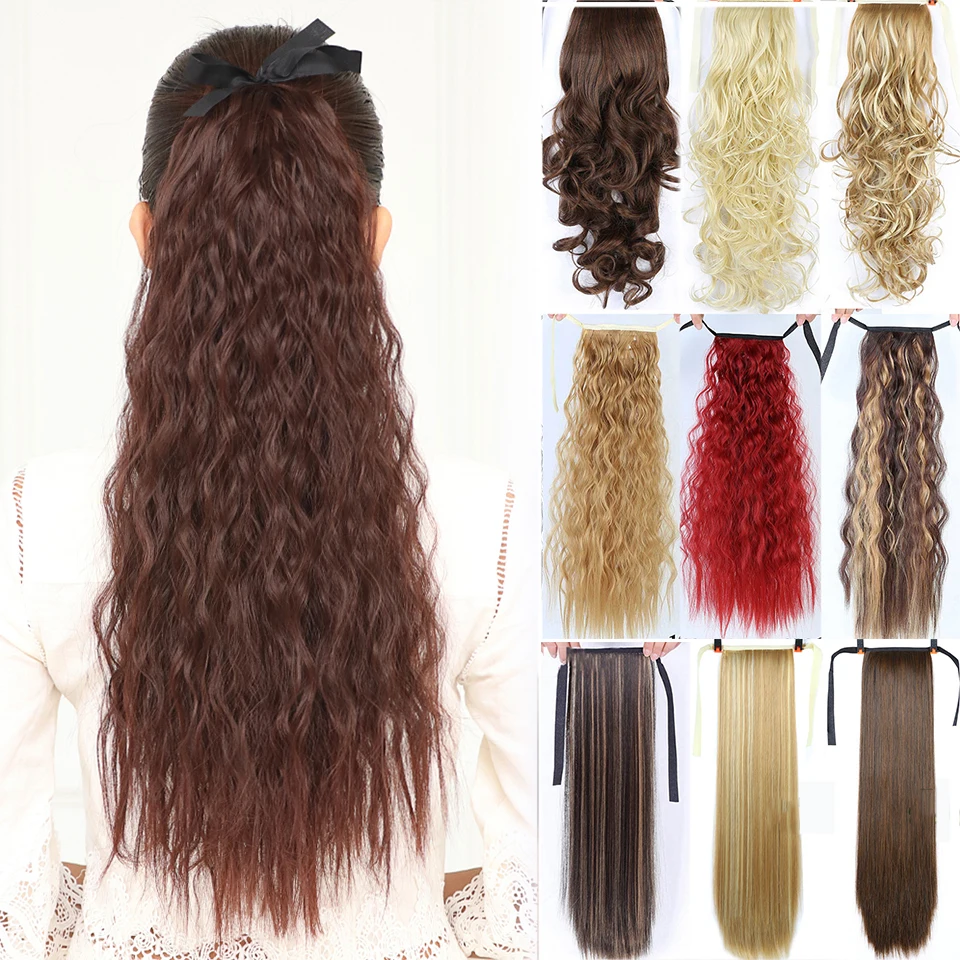 Allaosify 22-дюймовые длинные шелковистые прямые Конские хвосты с зажимом синтетический конский хвост термостойкие искусственные волосы для наращивания обертывание круглые шиньоны