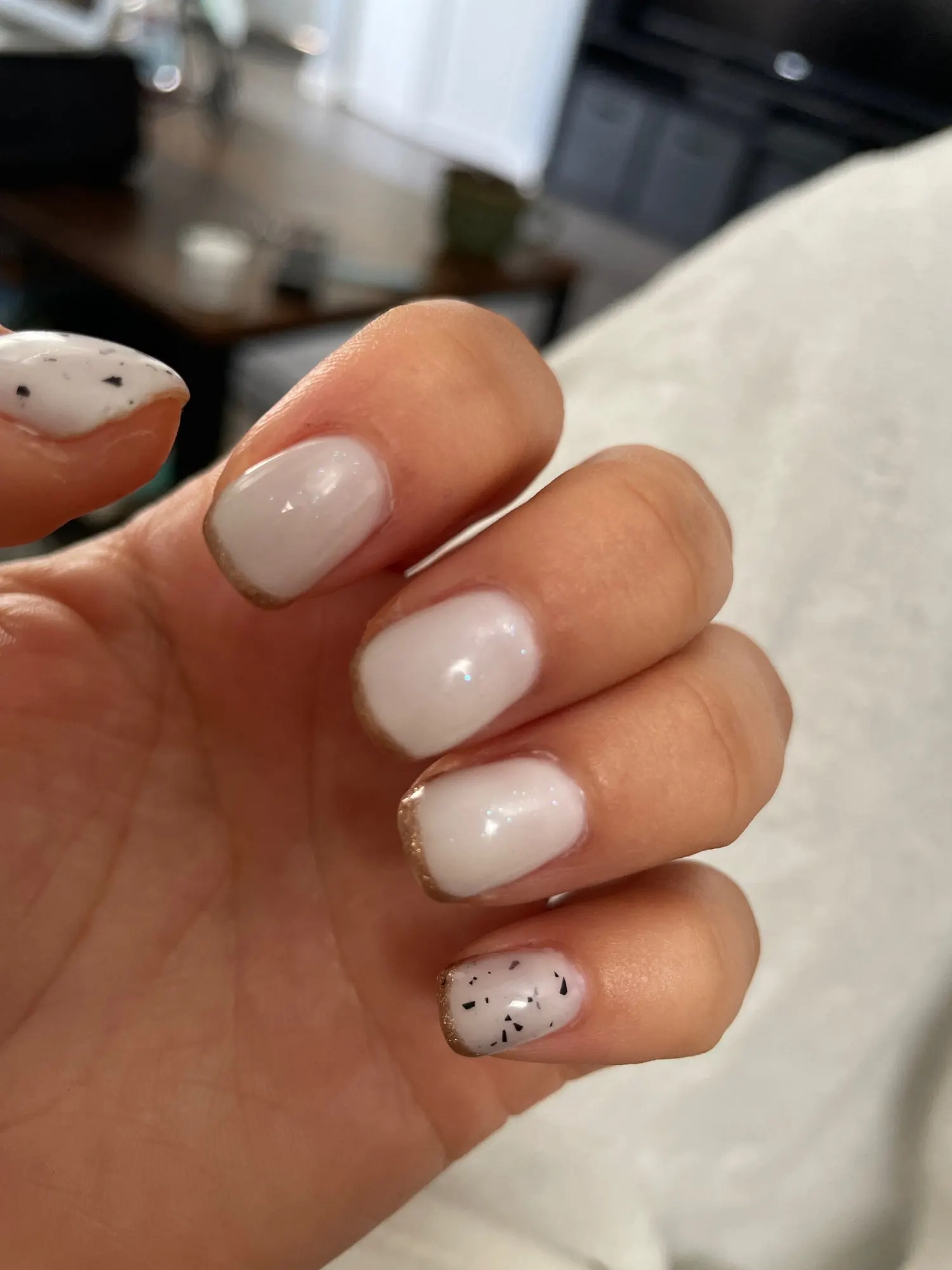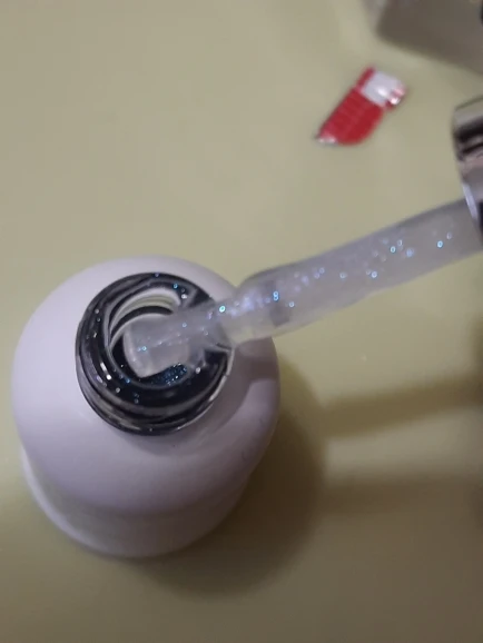 Взяла топ с мелким шимпером. На нежных оттенках лака смотрится бомбезно, как изюминка. Беру не первый раз, жалоб в носке маникюра не было)