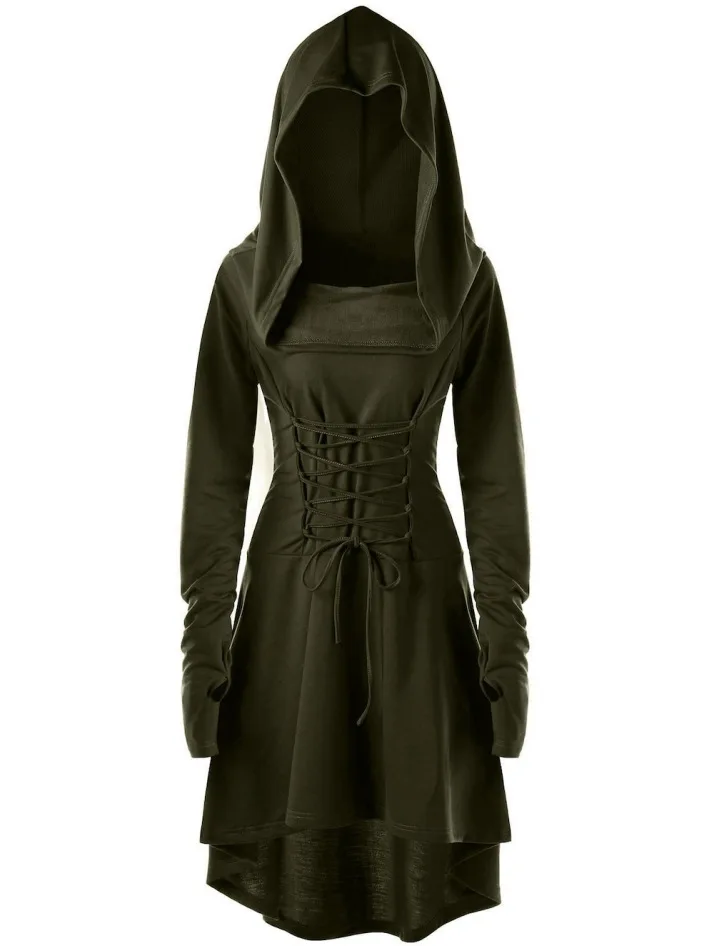 Средневековый женский костюм на шнуровке с капюшоном, платье с высо...