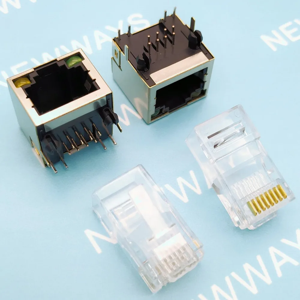 20 шт.лот Rj45 медный корпус Сетевая розетка 56-8P8C с лампой и экранированной и кристаллической головкой 8Pin комбинированные пакеты