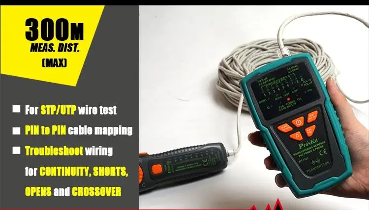 Кабель Pro'sKit MT-7029, шумофильтрующий, сетевой, PoE, тонер-зонд,...