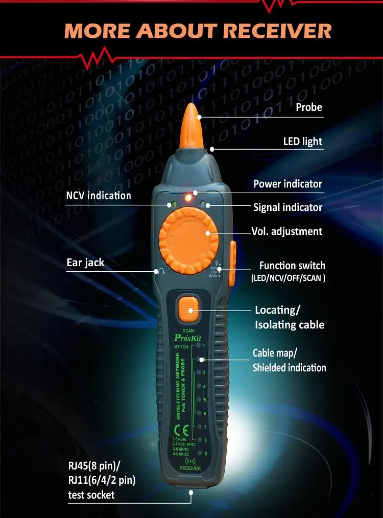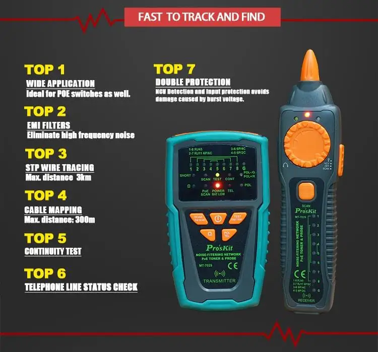 Pro \ 'skit MT-7029-C анти-помех аудио сеть POE проверка линии сетевой кабель тестер для провода телефонной линии детектор трекер