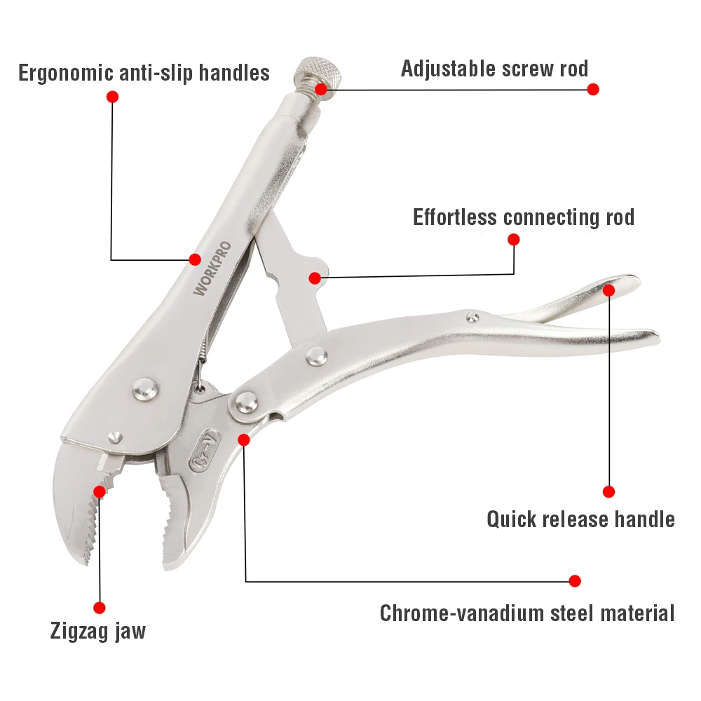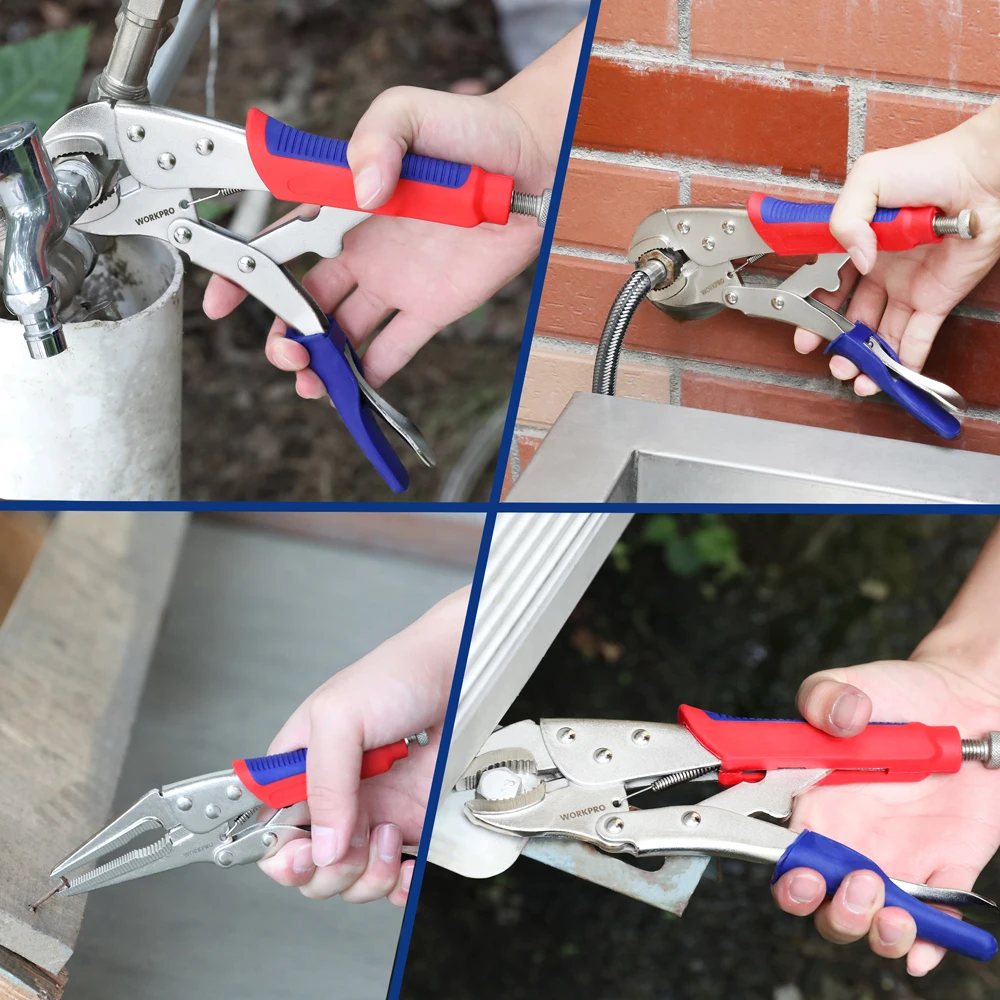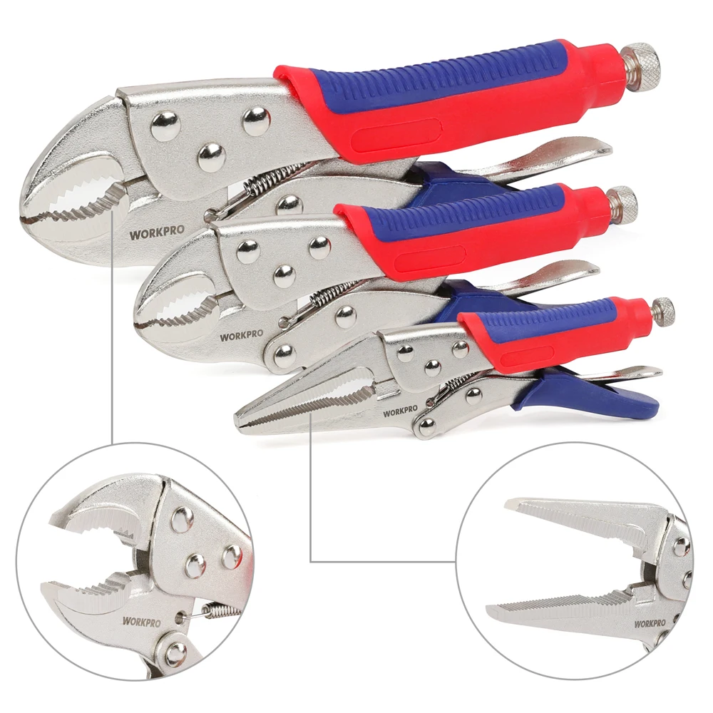 Набор фиксирующих плоскогубцев WORKPRO, Многофункциональные клещи с закругленными губками, с прямым и длинным носом