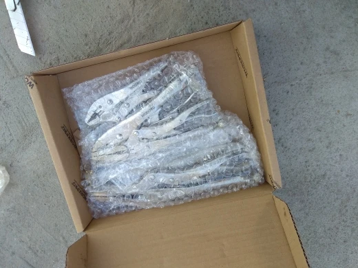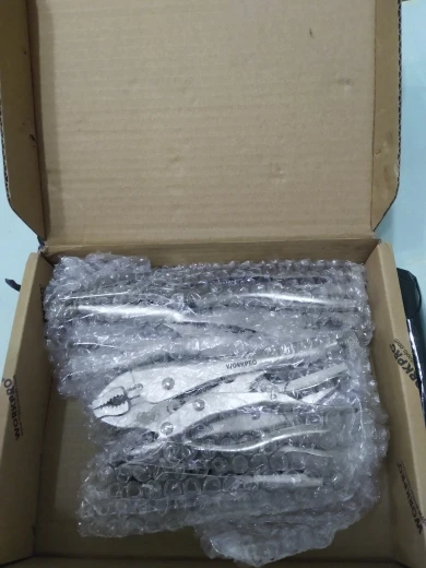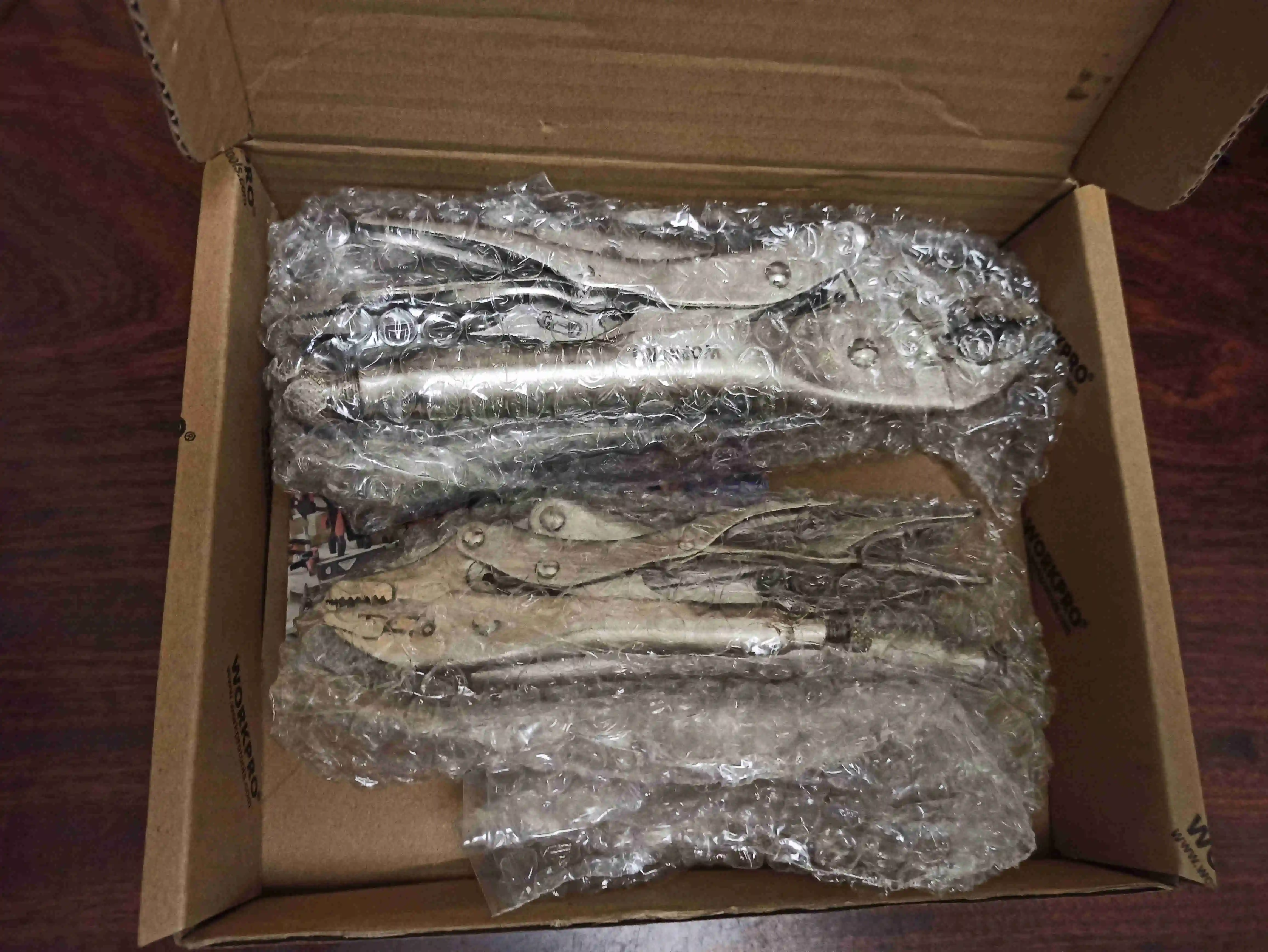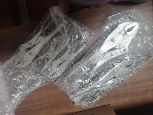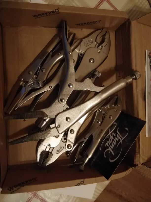 Заказ пришёл очень быстро - в течении полутора недель. Комплект полный, плотно упакован в картонную коробку, ничего не болталось. Инструмент хорошего качества: ни заусенец,, ни сбоев. Отлично фиксируется, деталь держит "мёртво". Я очень доволен. Рекомендую.