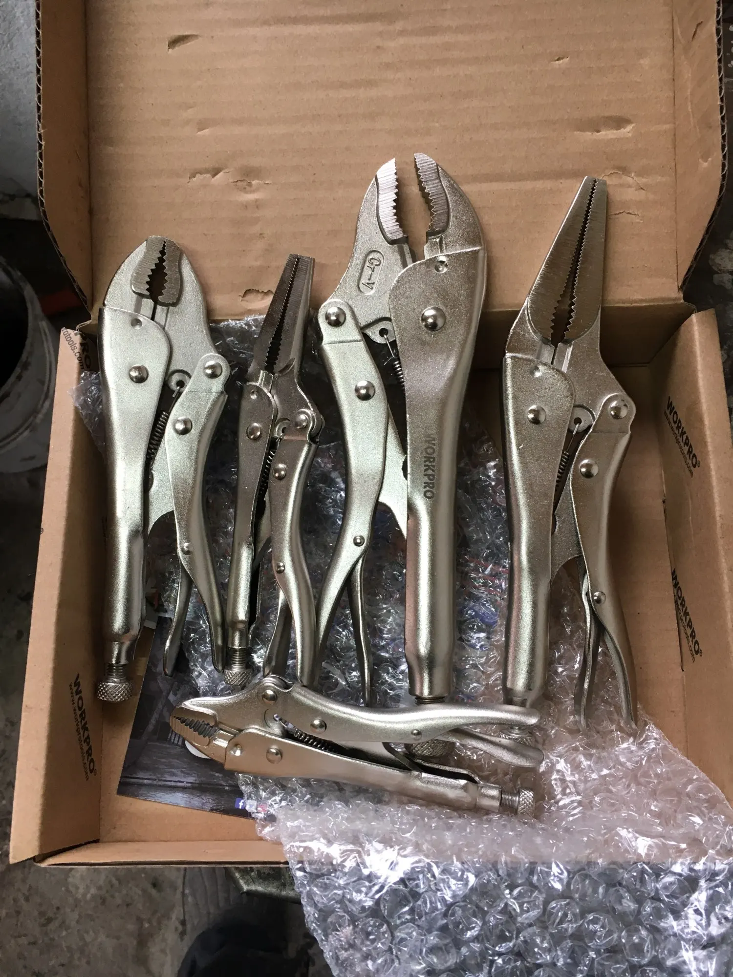 прикольный набор, зажимают крепко. 3 маленьких, 2 побольше. качество для такой стоимости очень даже, для профессиональной деятельности не знаю, но для эпизодического применения в гараже пойдет. короче, меня устраивает все