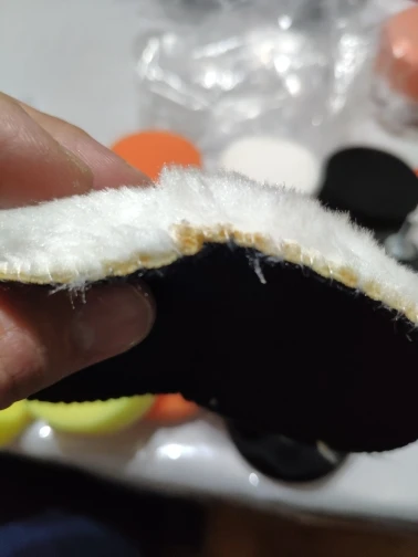 По качеству сейчас сказать не могу, не использовал. на вид вроде как норм. но советую (для кого это важно) обратить внимание на то, что мех подстрижен по самому краю (смотри фото) черного тканевого основания, которое по линии отреза ещё и оплавленно (видимо для того чтобы не пушилось) то есть оно твёрдое и при неосторожности может повредить ЛКП. то есть этот мех для полировки ровной поверхности и НЕ ВБЛИЗИ с выступающими элементами.