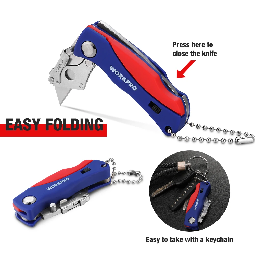 Портативный складной нож WORKPRO с 5 лезвиями, карманный нож с цепочкой для ключей, мини нож брелок для кемпинга Utilit