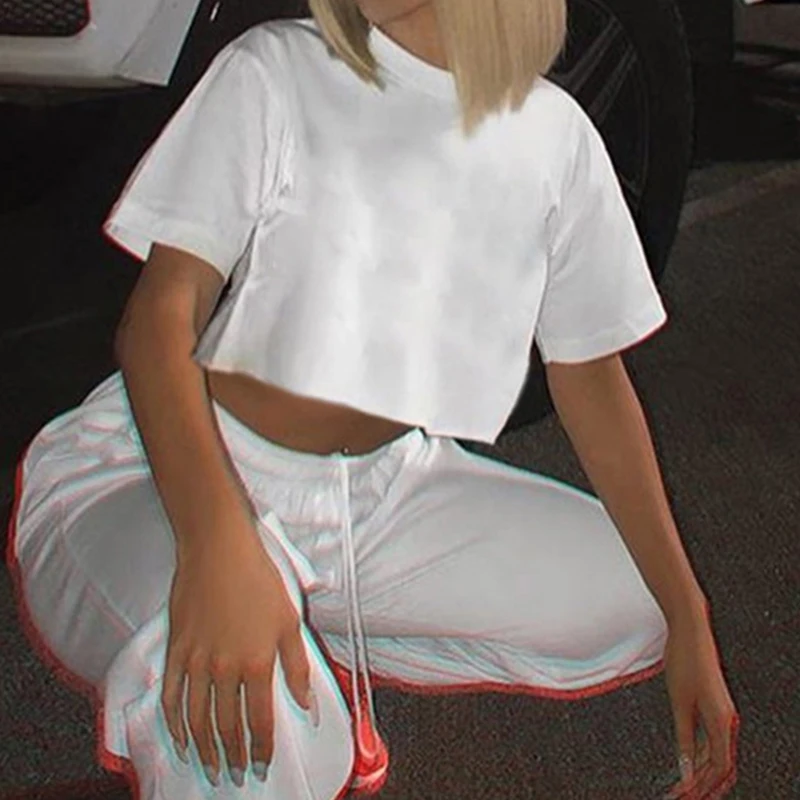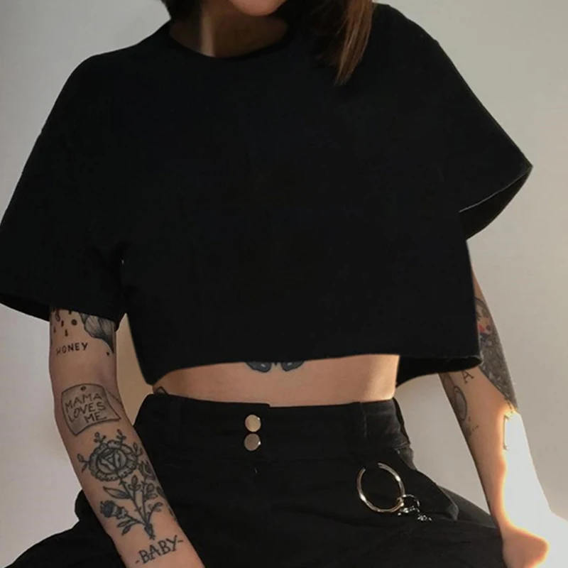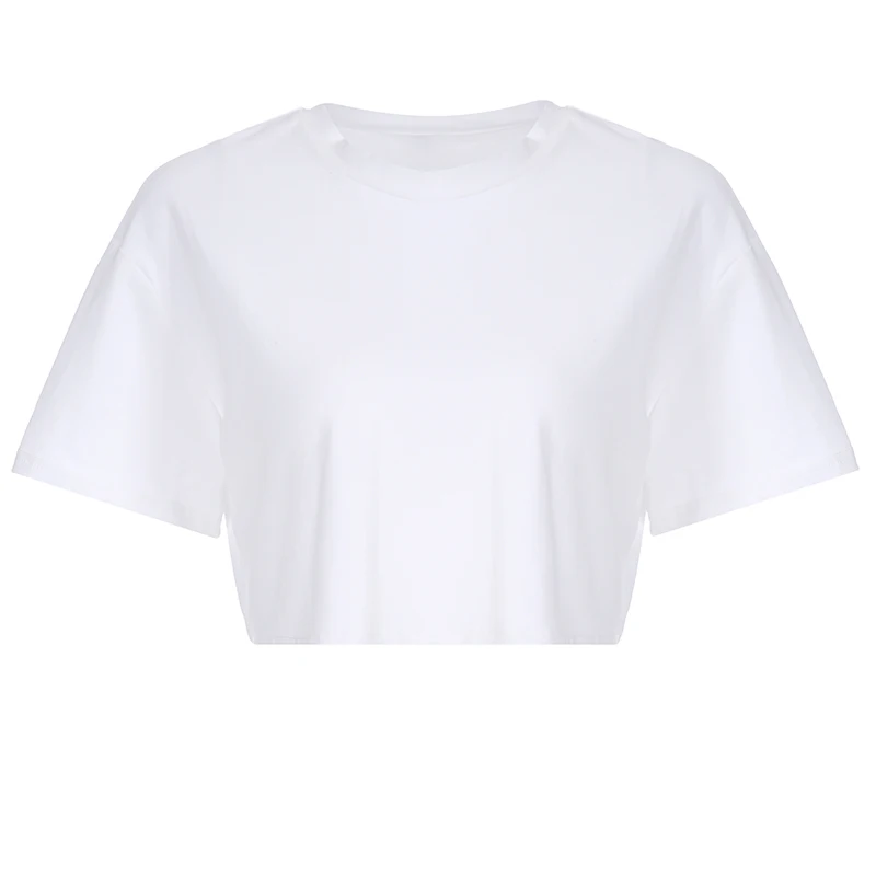 Укороченный Топ женский, однотонный, с круглым вырезом и коротким рукавом, лето, 2020