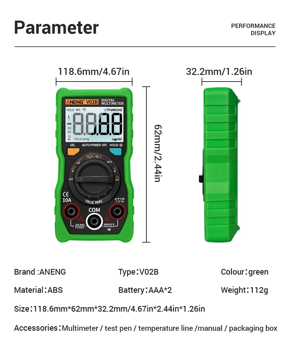 ANENG V02B высокоточный автоматический Диапазон Цифровой мультиметр