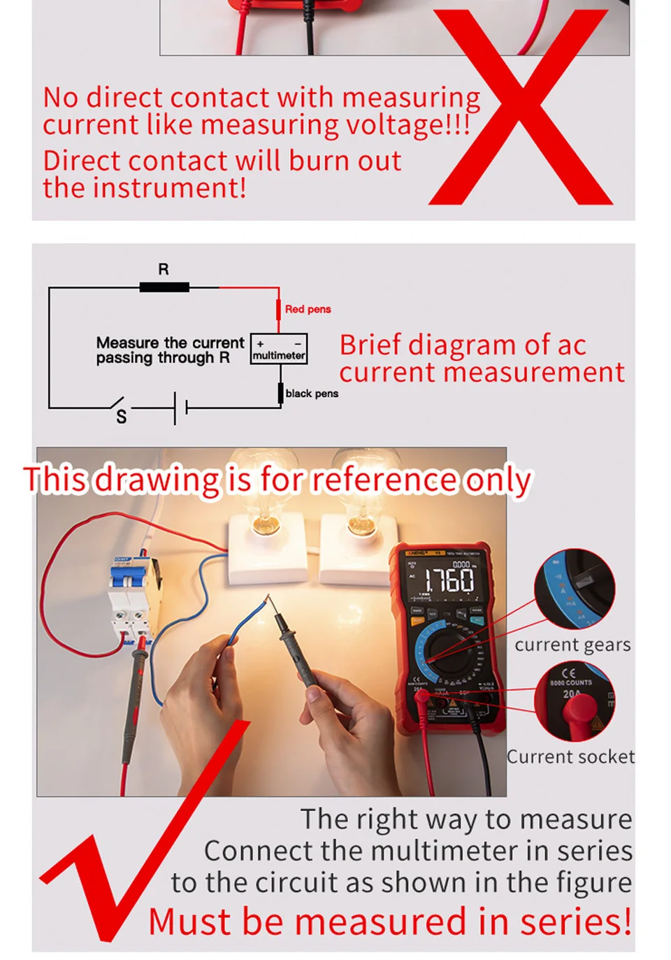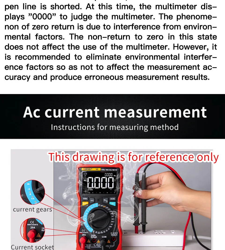 1: Если температура окружающей среды и влажность в воздухе изменятся слишком сильно, он не вернется к нулю; 2: вокруг находится сильное электрическое поле или магнитное поле. 3: сам мультиметр неисправен. Когда мультиметр не возвращается к нулю, его можно оценить следующим образом: мультиметр набран в файл mV, соответствующее входное отверстие вставляется в красную и черную линию ручки, и красная и черная линия ручки коротка. В это время мультиметр отображает «0000», чтобы определить мультиметр. Феномен нулевого возврата из-за вмешательства экологических факторов. Отсутствие возврата к нулю в этом состоянии не влияет на использование мультиметра. Тем не менее, рекомендуется устранить факторы воздействия окружающей среды, чтобы не повлиять на точность измерений и произвести ошибочные результаты измерений.