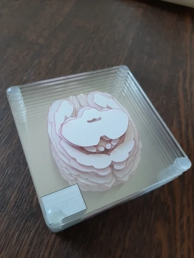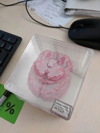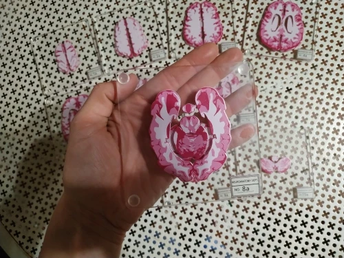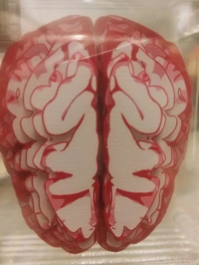Кусочки головного мозга прилипают к внешней стороне подставки спереди и сзади. Немного беспокоясь, что они сойдут, когда промокают.