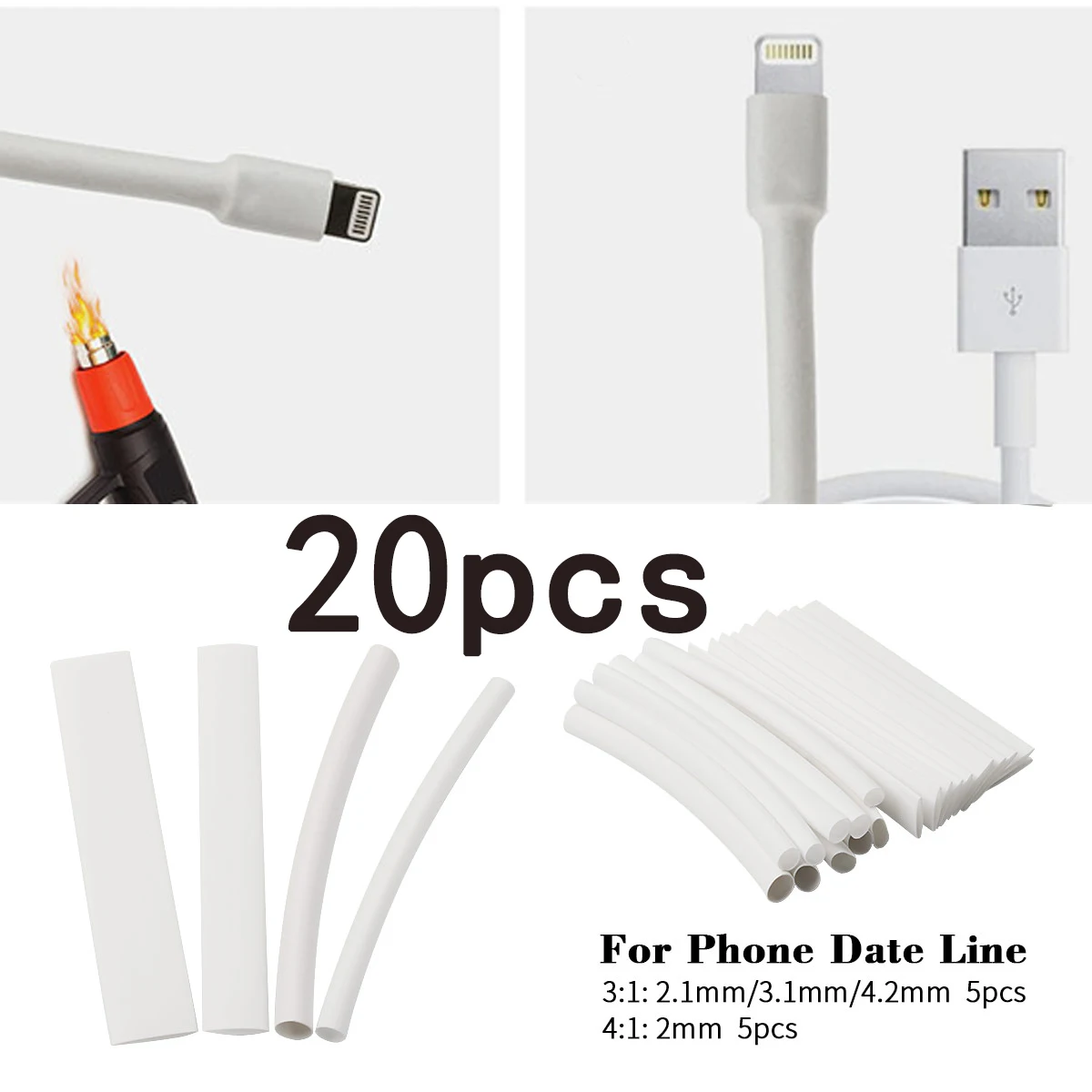 Термоусадочные трубки, защитные белые трубки для наушниковтелефонаiPad, соотношение 3:14:1, 20 шт.компл.