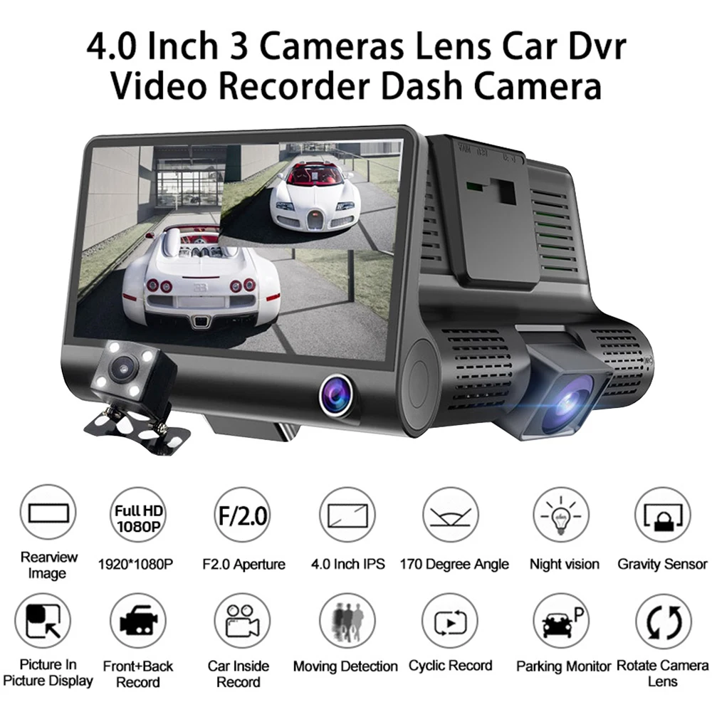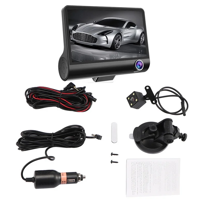 Dash cam 3 Камера s объектив 4,0 дюймов Автомобильный видеорегистратор Даш Камера 3 объектива с заднего вида видео Регистраторы Dashcam Full Hd 1080P Русский язык