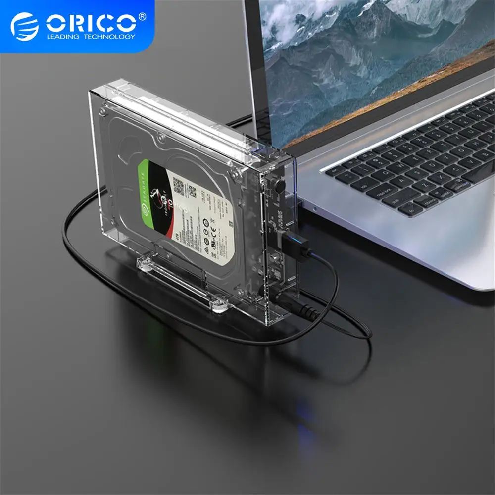 Корпус для жесткого диска ORICO 3,5 дюйма, прозрачный корпус для HDD с держателем 5 Гбитс, высокоскоростная передача, чехол для жесткого диска 12 ТБ, контейнер для хранения большой емкости
