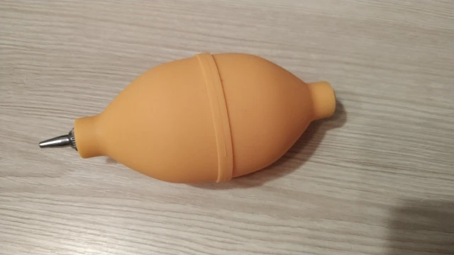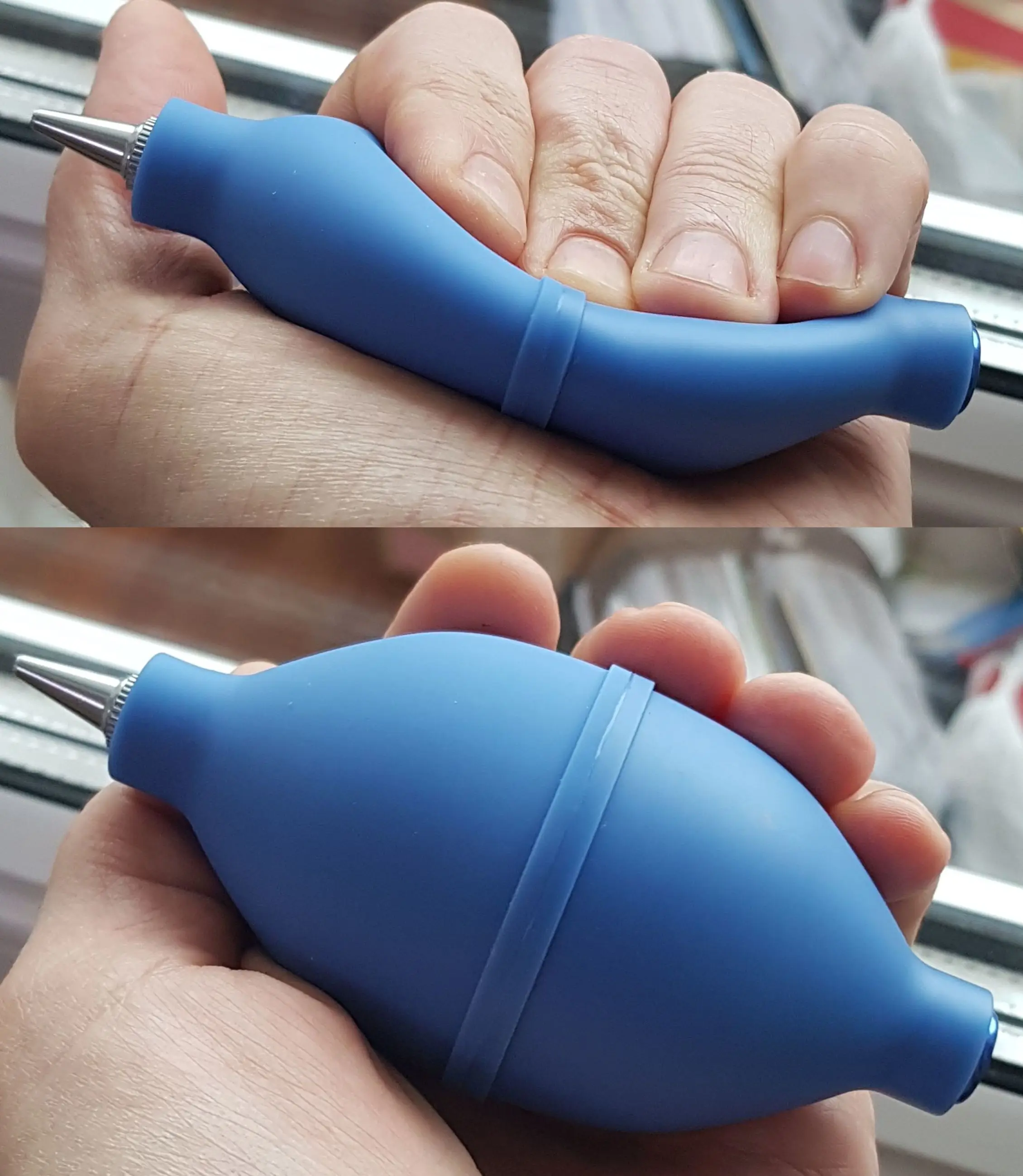 груша як груша. нічого особливого. Погано те, що повітря захоплює з обох боків (тобто втягує пилюку і випускає її), а для чищення матриці це не дуже добре.