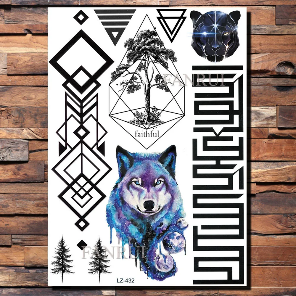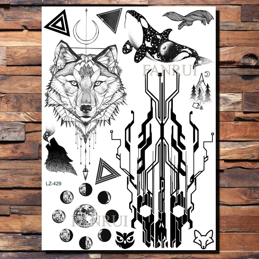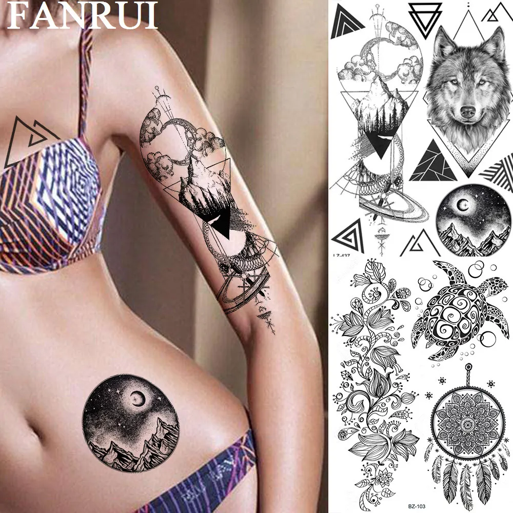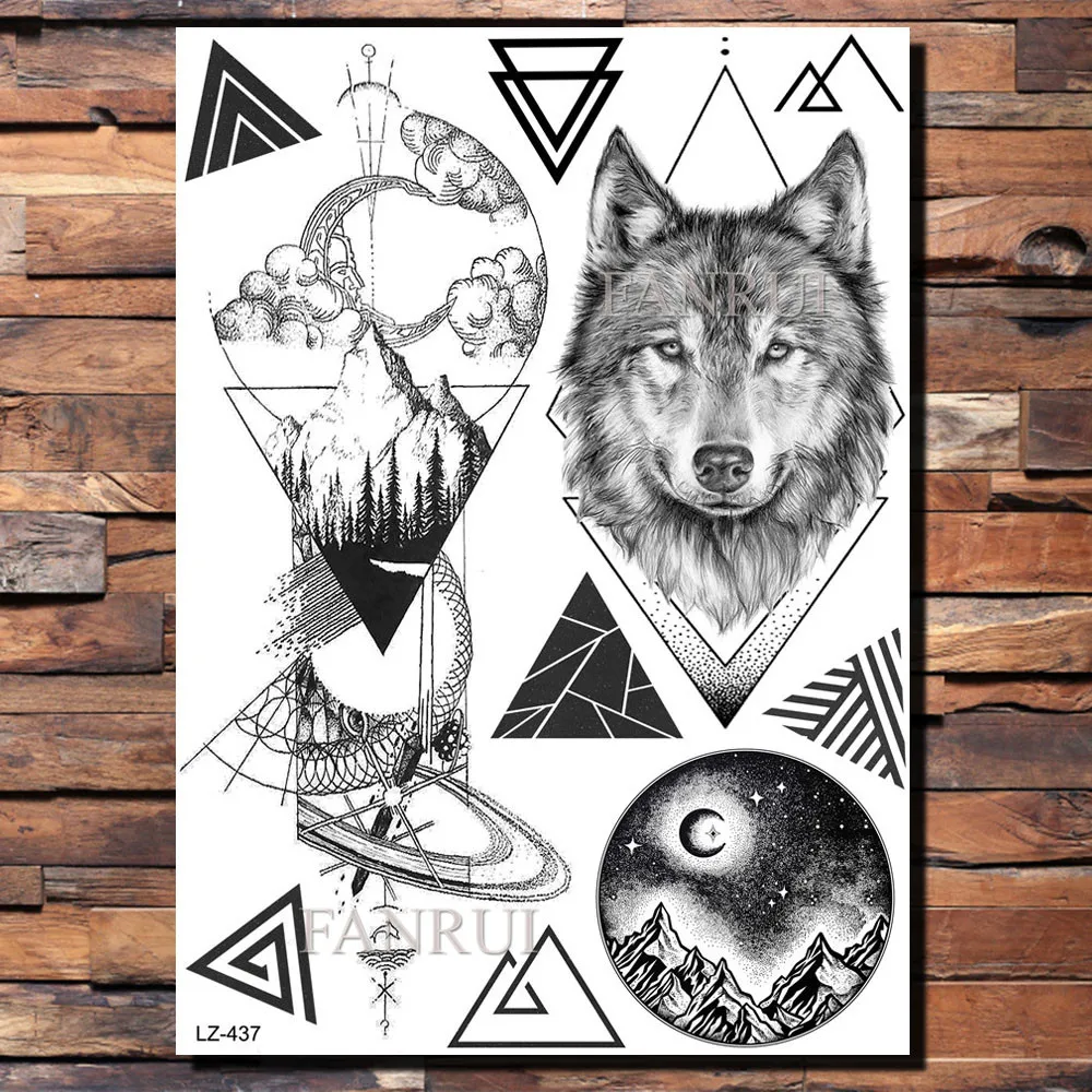 FANRUI Геометрическая волк Алмазный Треугольник горный лес Временная тату-наклейка поддельная тату черная забавная рука для боди-арта на заказ тату