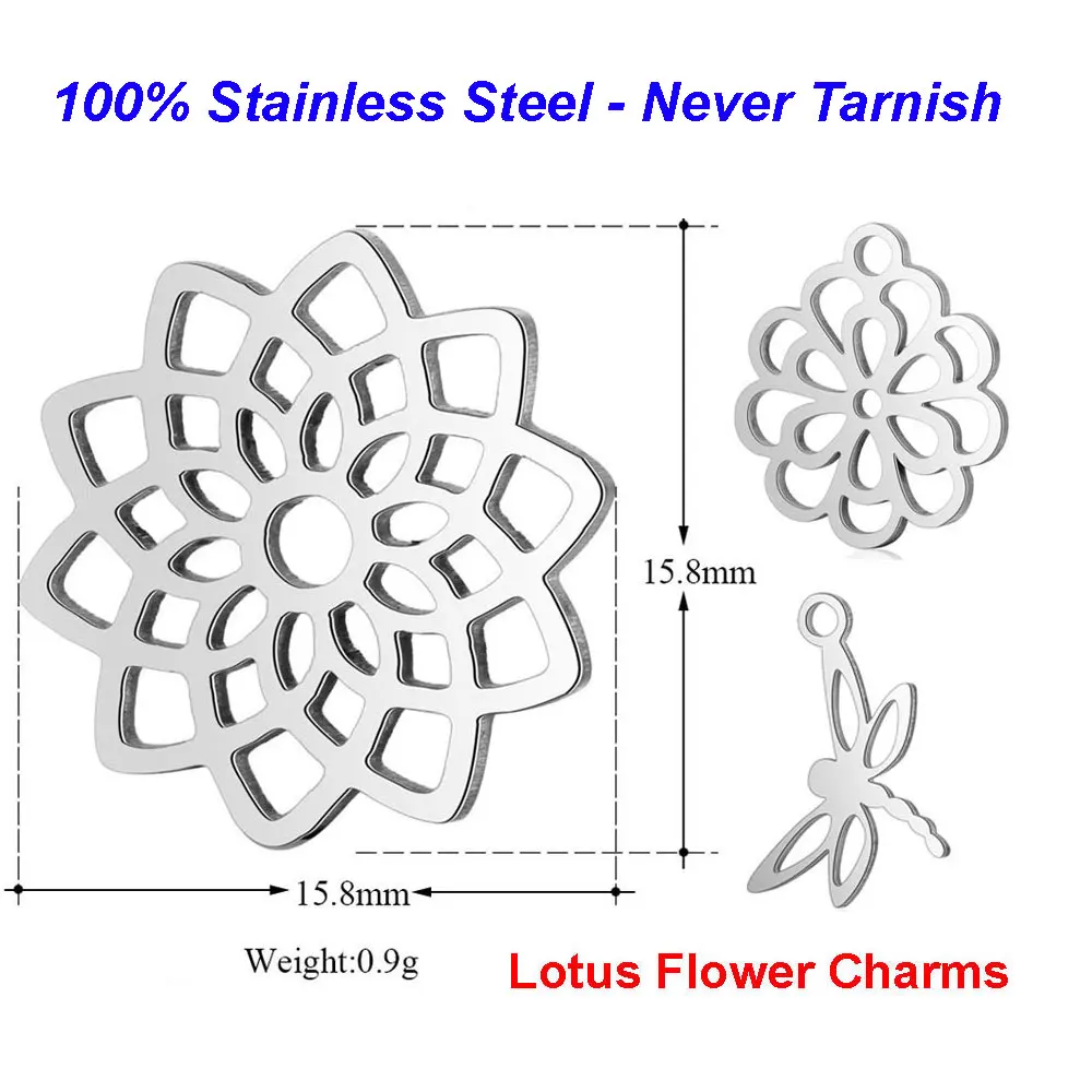10 шт.лот, подвески в виде лотоса из нержавеющей стали 316L, Полированные Подвески VNISTAR в виде цветка, бабочки, подвеска сделай сам, Ювелирная фурнитура
