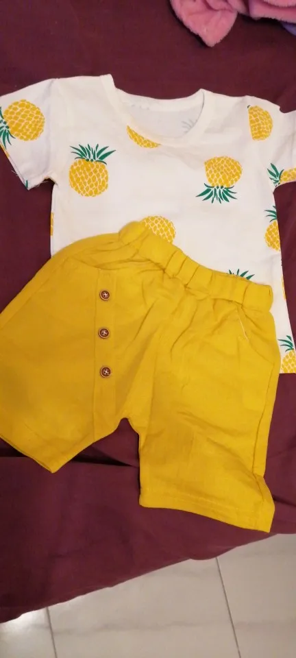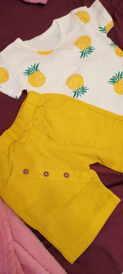 Костюм для маленьких мальчиков, летняя одежда, модная хлопковая футболка, детский топ с принтом ананаса + шорты, повседневная детская одежда