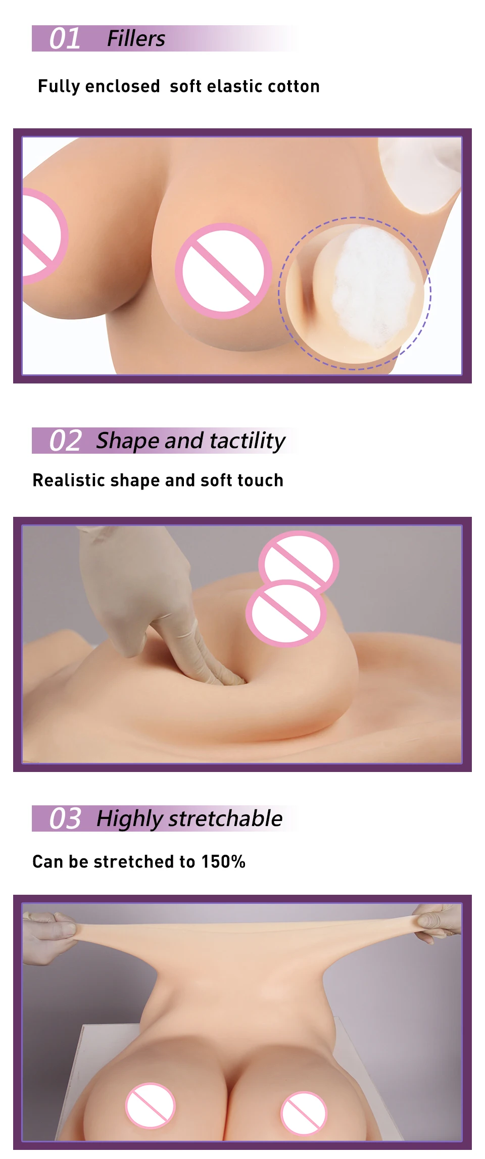 Накладные груди KnowU, G-чашка, силиконовое полное боди, Трансвести...
