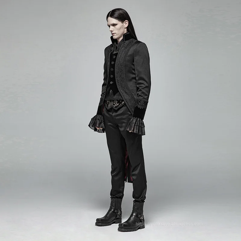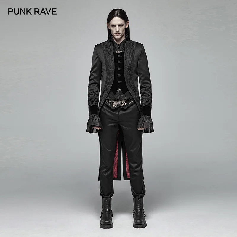 Мужская Готическая куртка в стиле Панк RAVE, длинная куртка в стиле джентльмена с хвостом Ласточки для вечерние НКИ, клуба, выступления на сцене, визуальный Кей