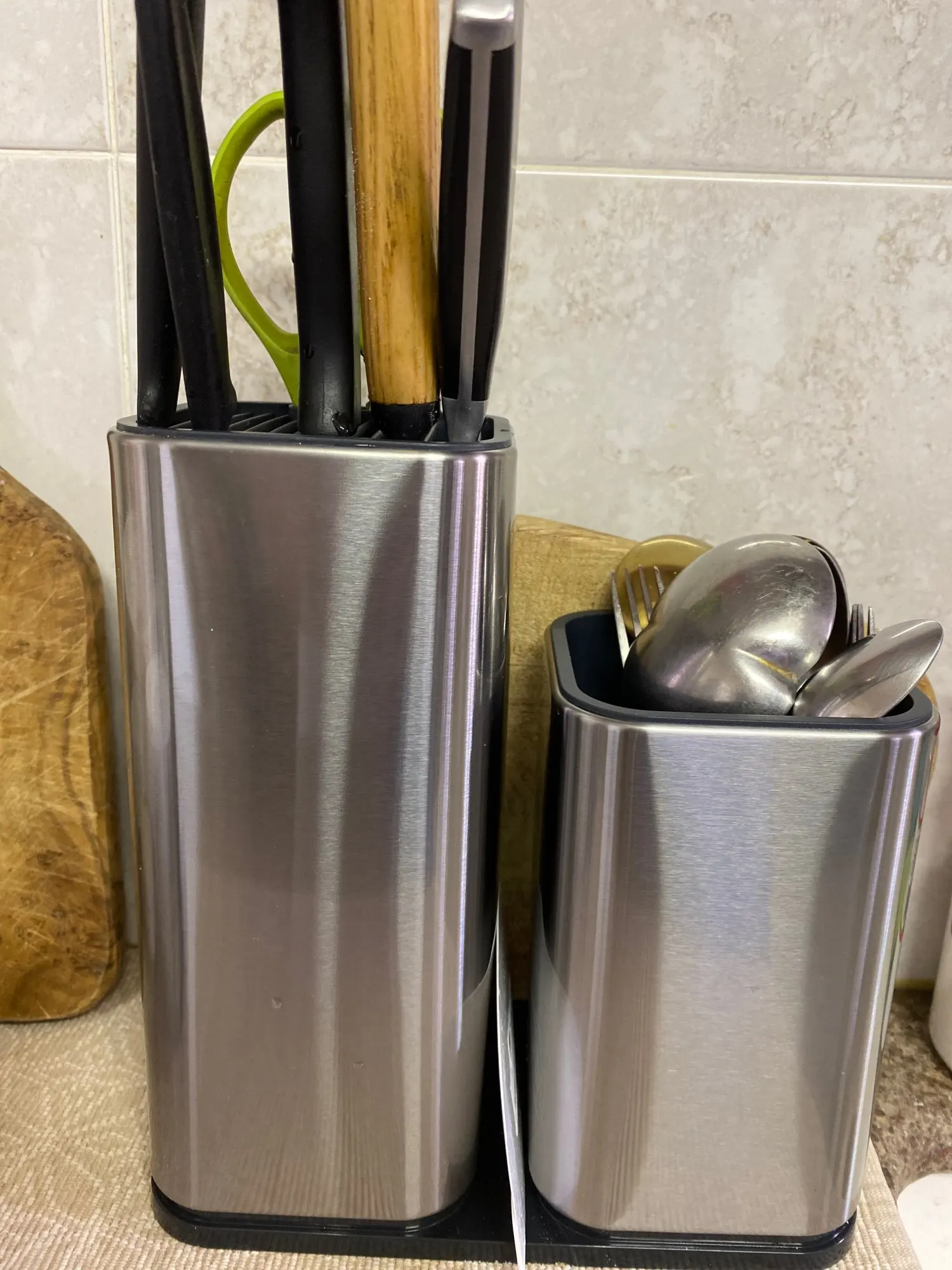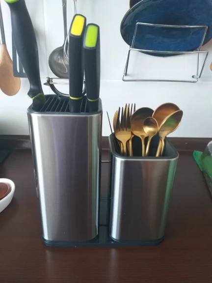 Пришло быстро, хорошо упаковано. Формы довольно высокие. Чайные ложечки там теряются. Ножи то что большие хорошо сидят а маленькие болтаются. Но все равно, удобное хранение и красивый вид. Я довольна. Я пока не поняла как его разбирать чтобы мыть.