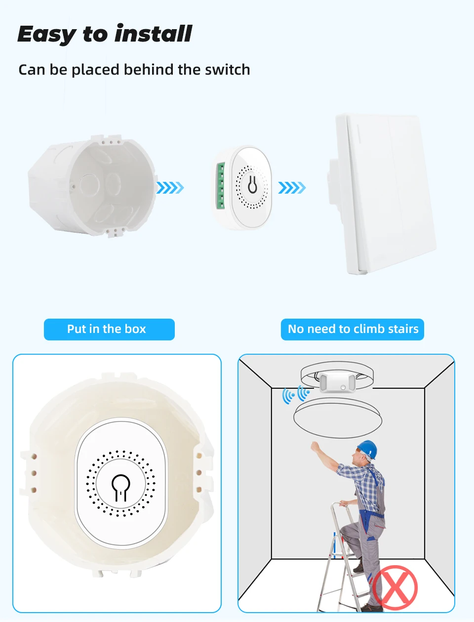 Veikia net per gerai. Sureaguoja į kitus išmaniuosius jungiklius, įjungia šviesą.