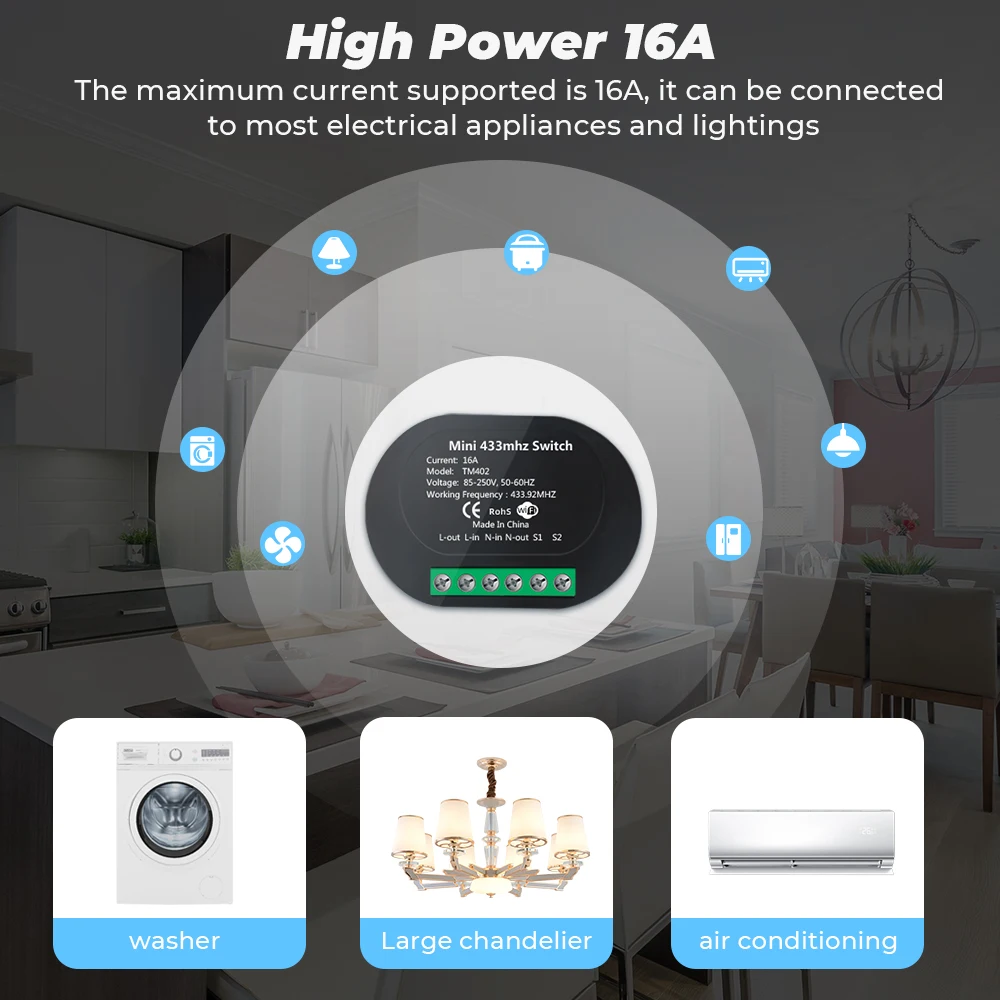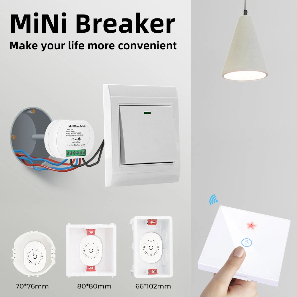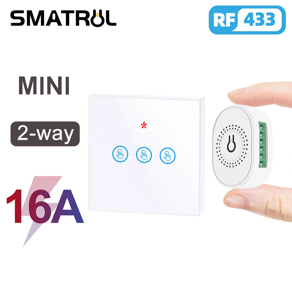Сенсорный выключатель света SMATRUL Mini 16 А, беспроводной модуль 433 МГц, электрический, для 2-стороннего пульта дистанционного управления, светодиодная лампа ВКЛ.ВЫКЛ.