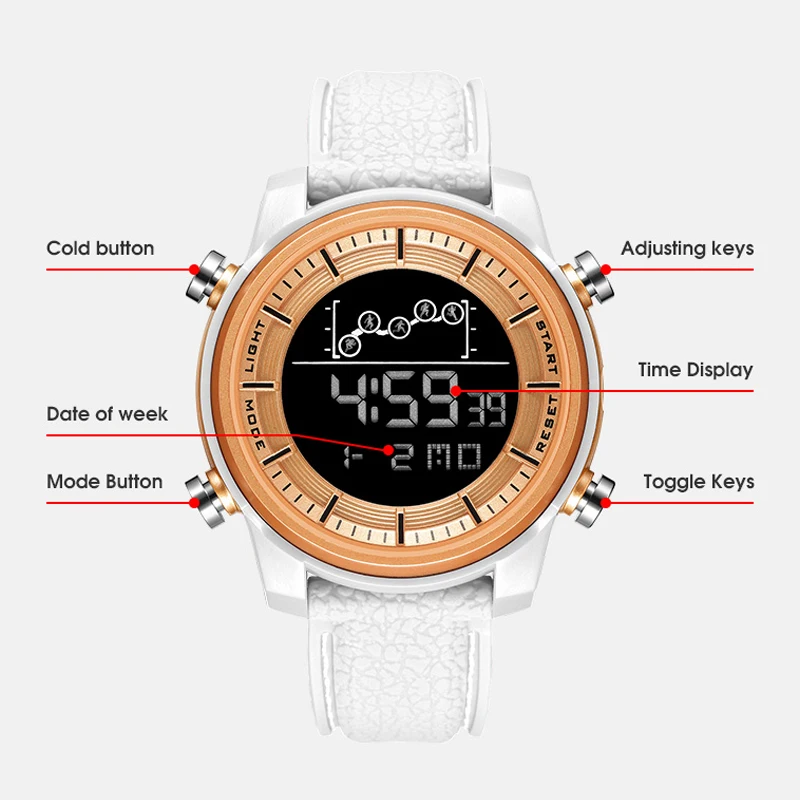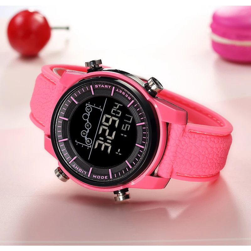 Новые женские часы в 2019 году, цифровые часы со светодиодным дисплеем. Это спортивные часы уличного стиля, розовые женские часы с будильником, секундомером, хронографом и дисплеем недели. 50 метров водонепроницаемости позволяет наслаждаться спортом на открытом воздухе.