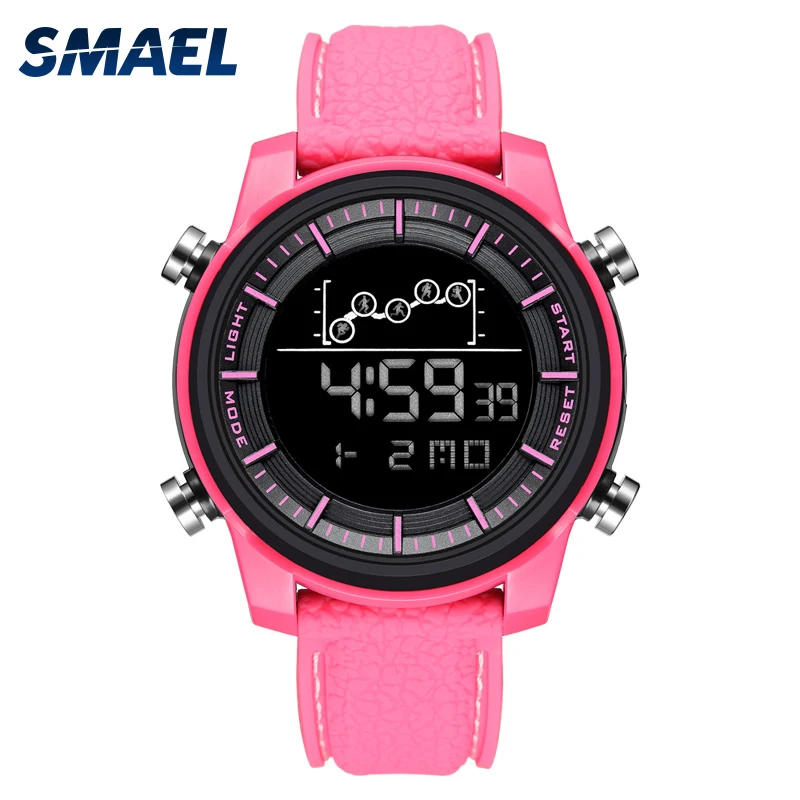 Женские цифровые спортивные часы SMAEL, водонепроницаемые наручные часы с хронографом, светодиодные будильники 1556, розовые цифровые часы reloj mujer