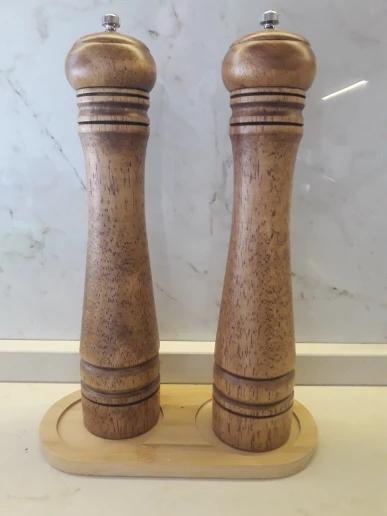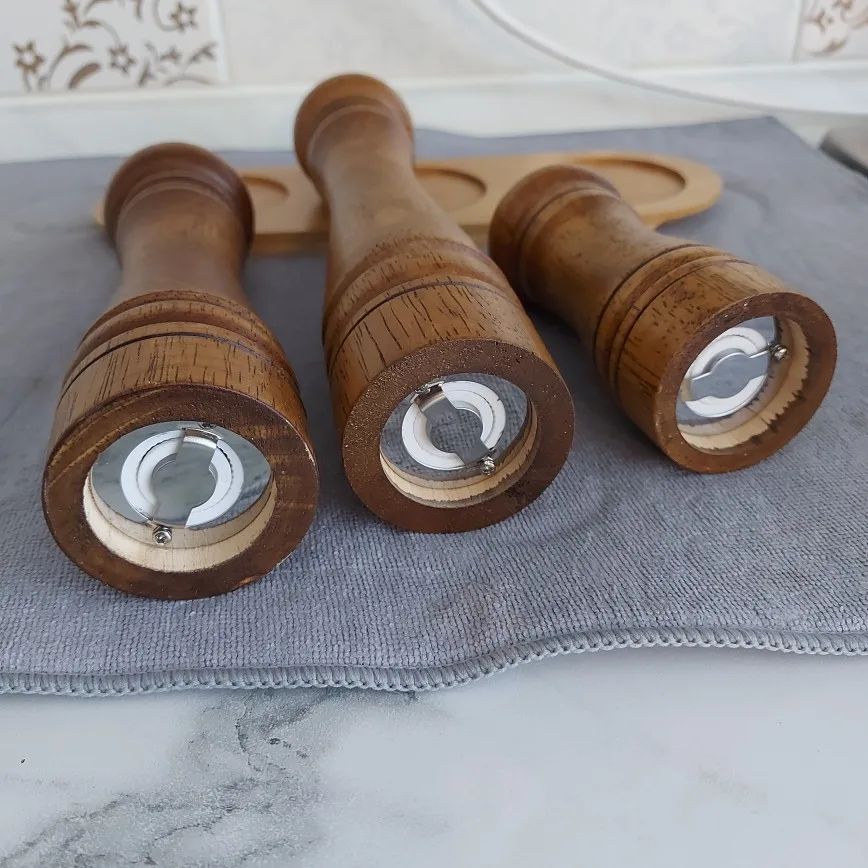 Набор деревянной мельницы для соли и перца с дополнительным подносом для морской соли и перца (5,8,10 дюймов) Strong Регулируемая дробилка