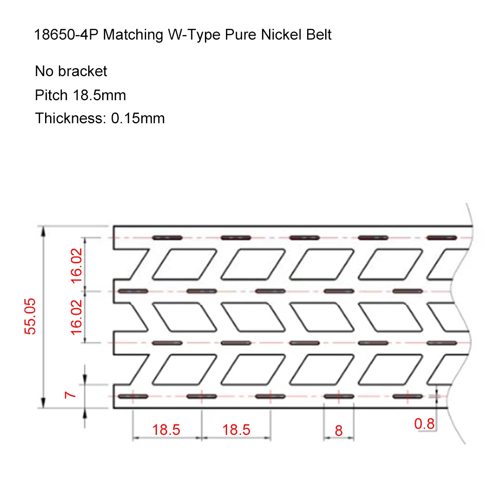18650-4P MATCHING W-teyp чистый никелевый ременьНе подходит для держателя батареиИнтервал: 18,5 ммТолщина: 0,15 мм
