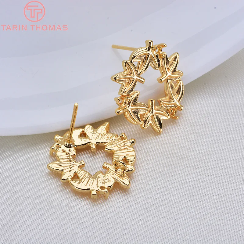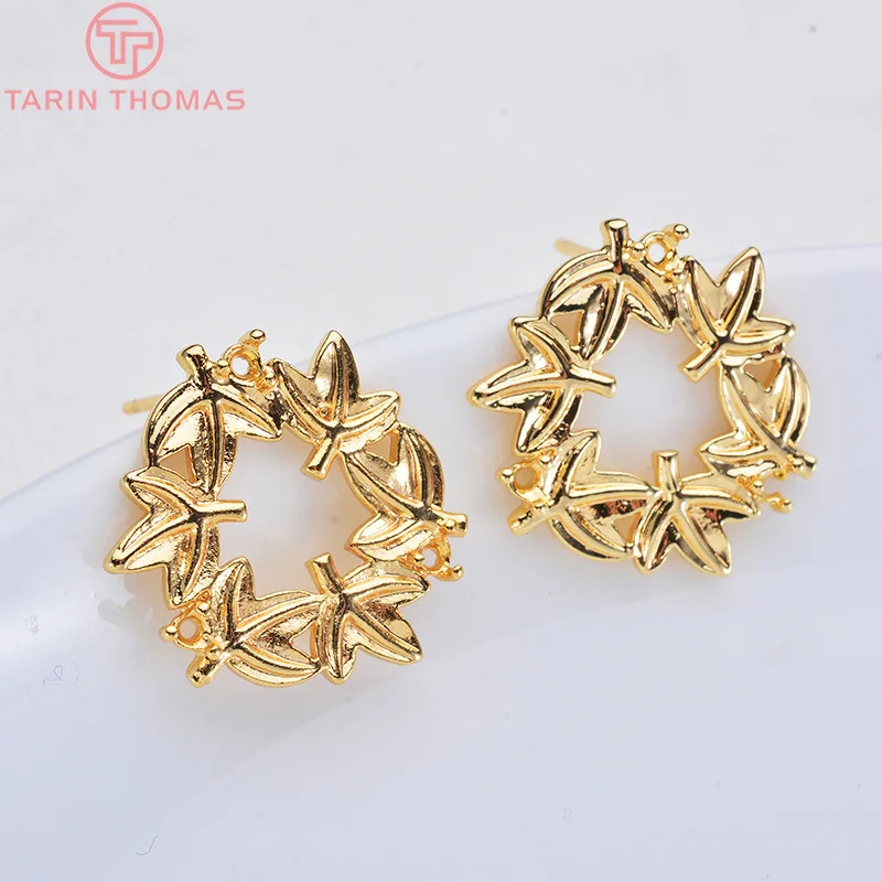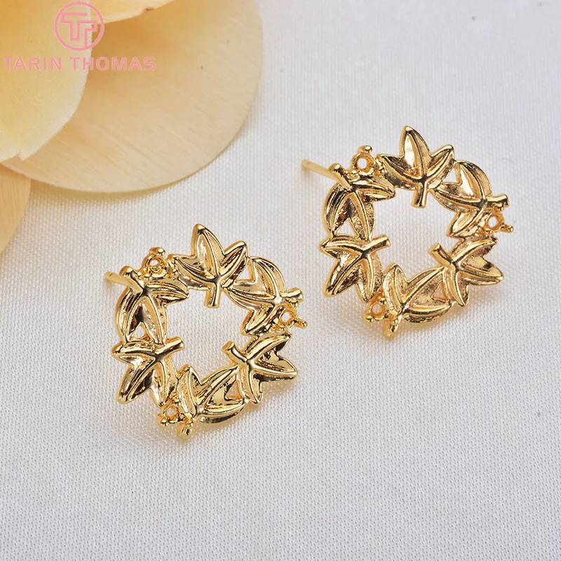 (2277)6 шт 17,5 мм позолоченные латунные цветочные серьги 24K высокого качества аксессуары ювелирные изделия сделай сам