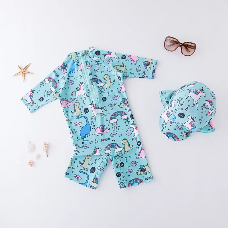Купальник для мальчиков с шапочкой, 3-24 месяцев, хлопок + полиэстер, 4 цвета